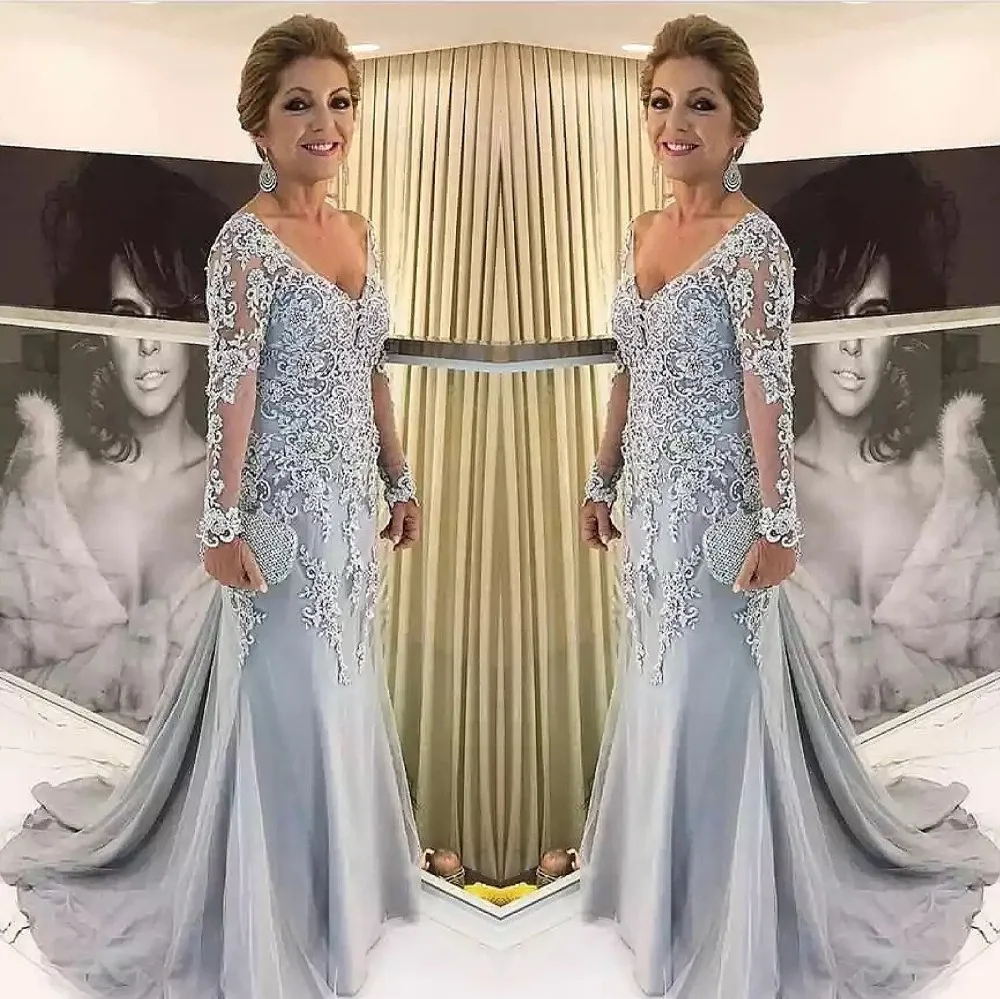 Элегантные Синие серебряные платья для матери невесты с длинным рук...
