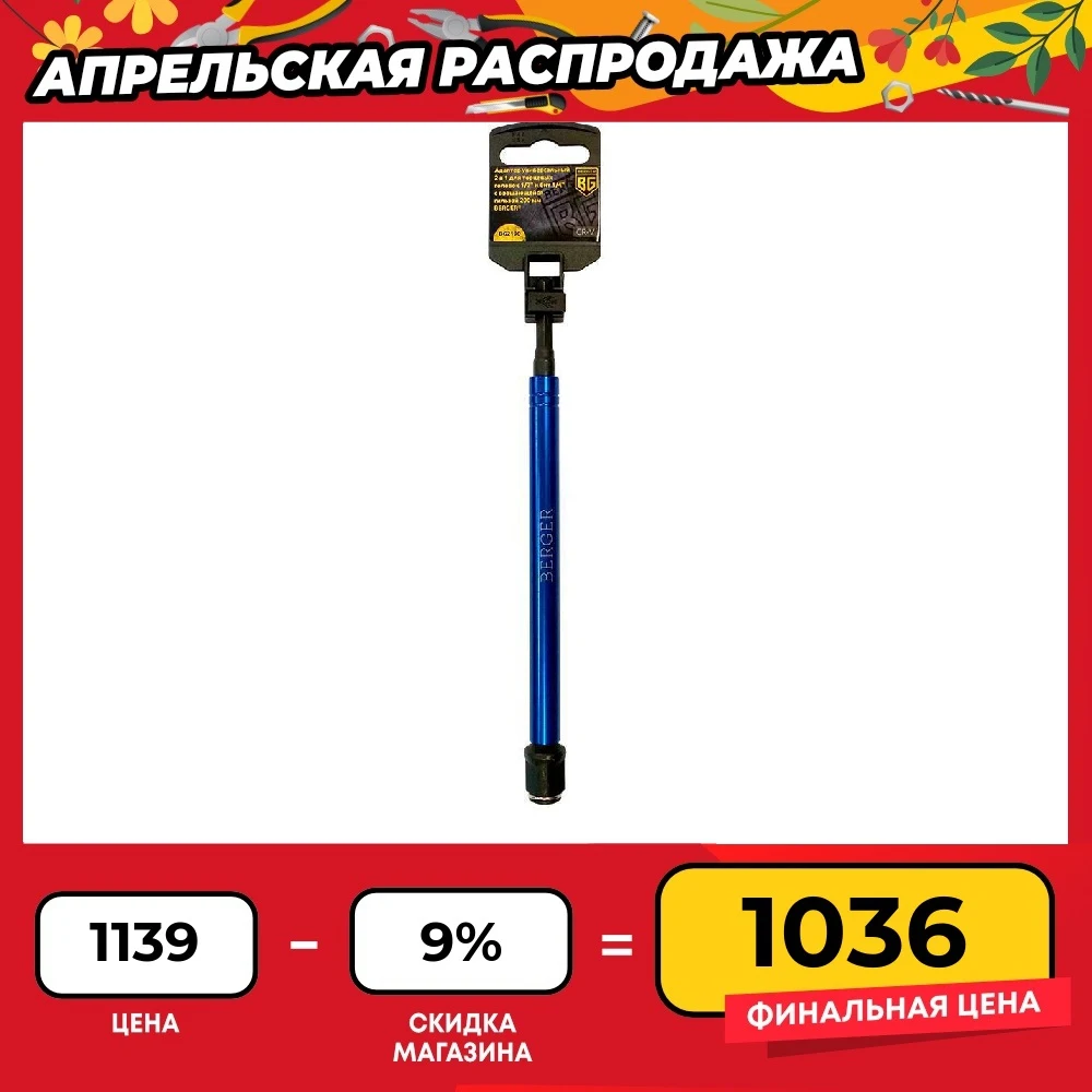 Адаптер универсальный 2в1 для торцевых головок 12 и бит 14 с вращ. гильзой 200 мм Berger BG2190