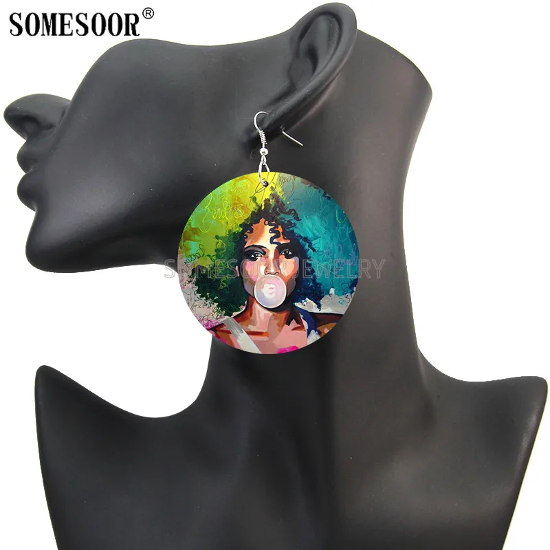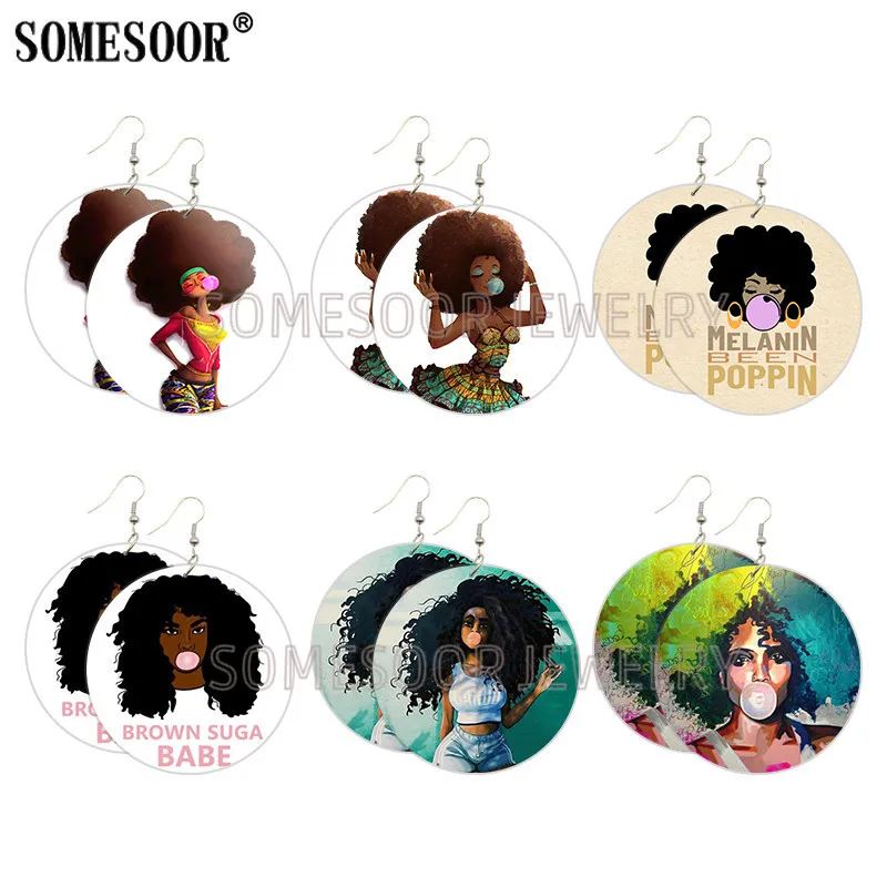 Деревянные серьги-подвески SOMESOOR, с изображением меланина, женского афро, петельки для волос