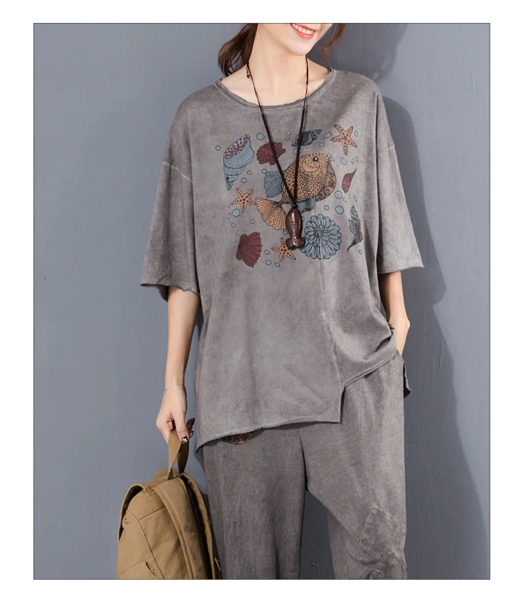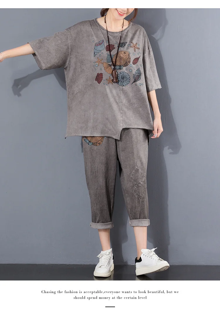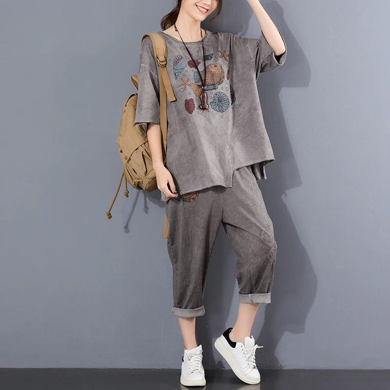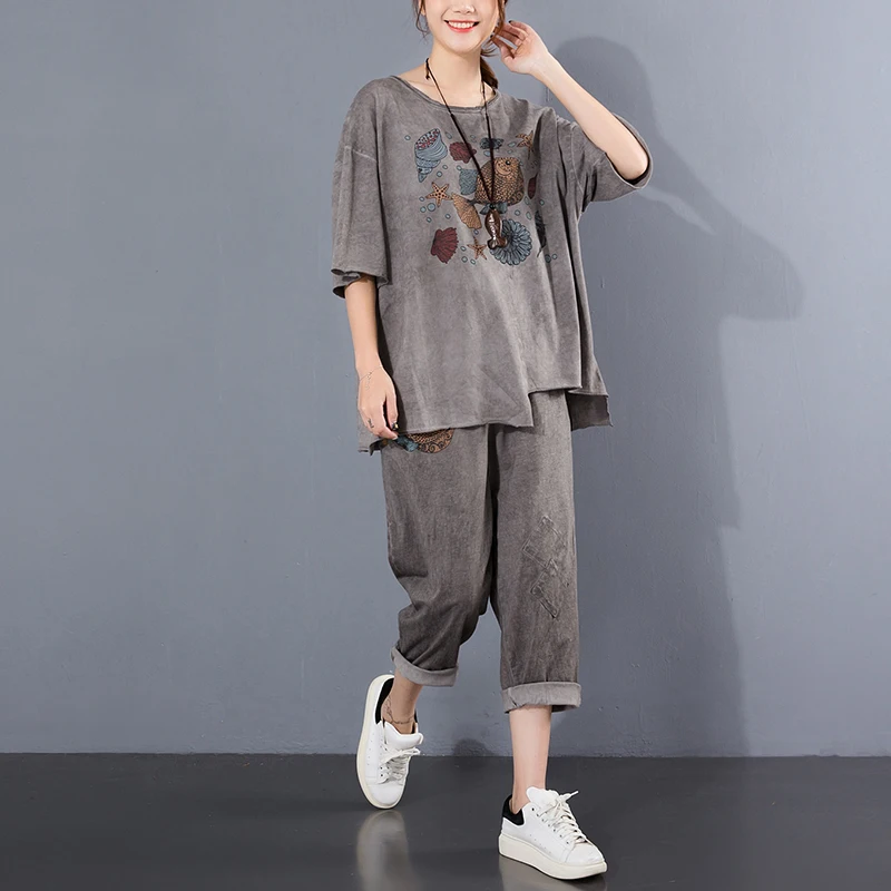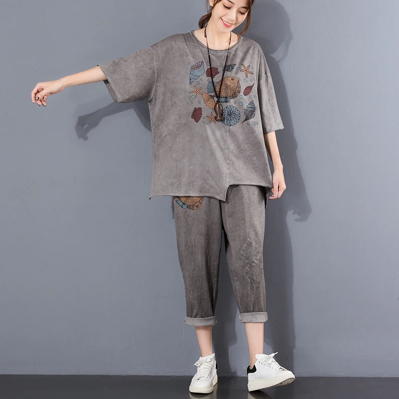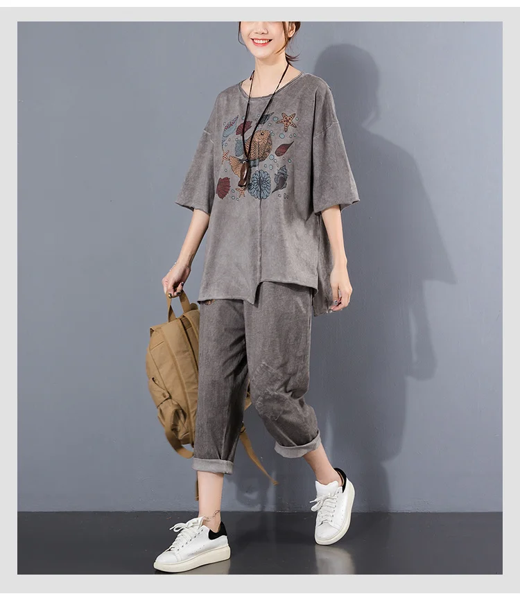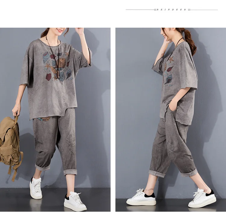Женский спортивный костюм, спортивный костюм из двух предметов, Свободный Повседневный костюм с коротким рукавом, в стиле ретро, весна-лето 2020