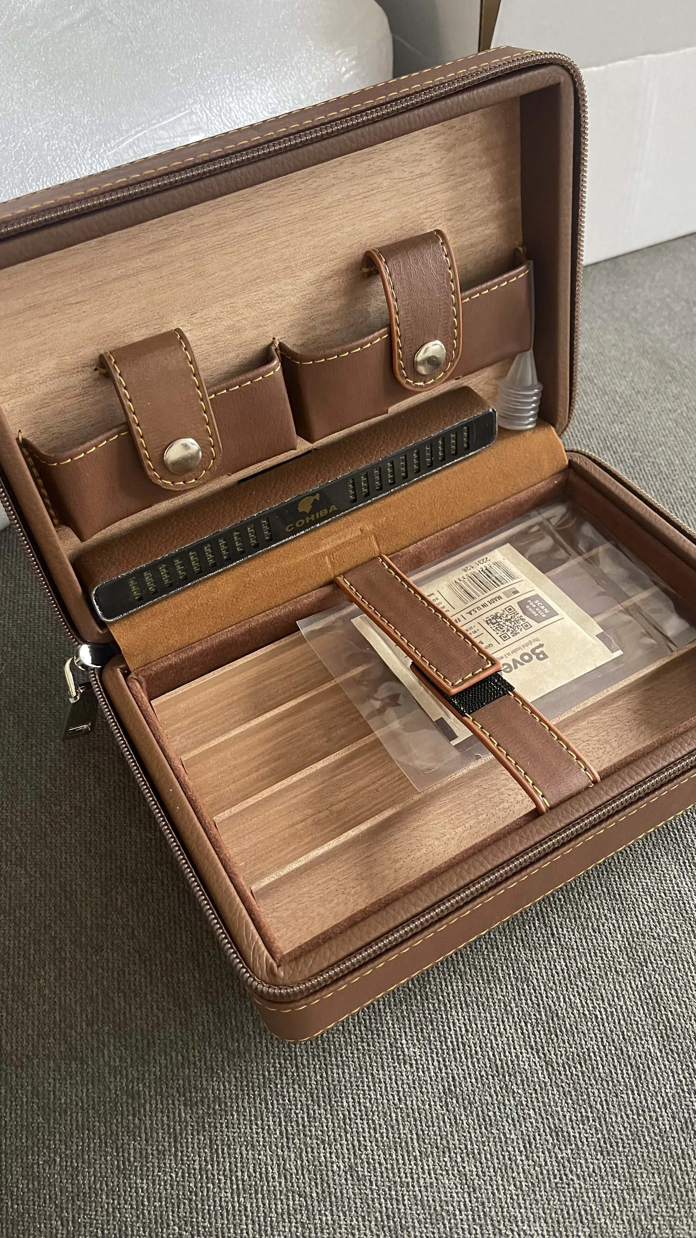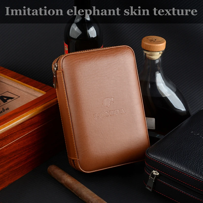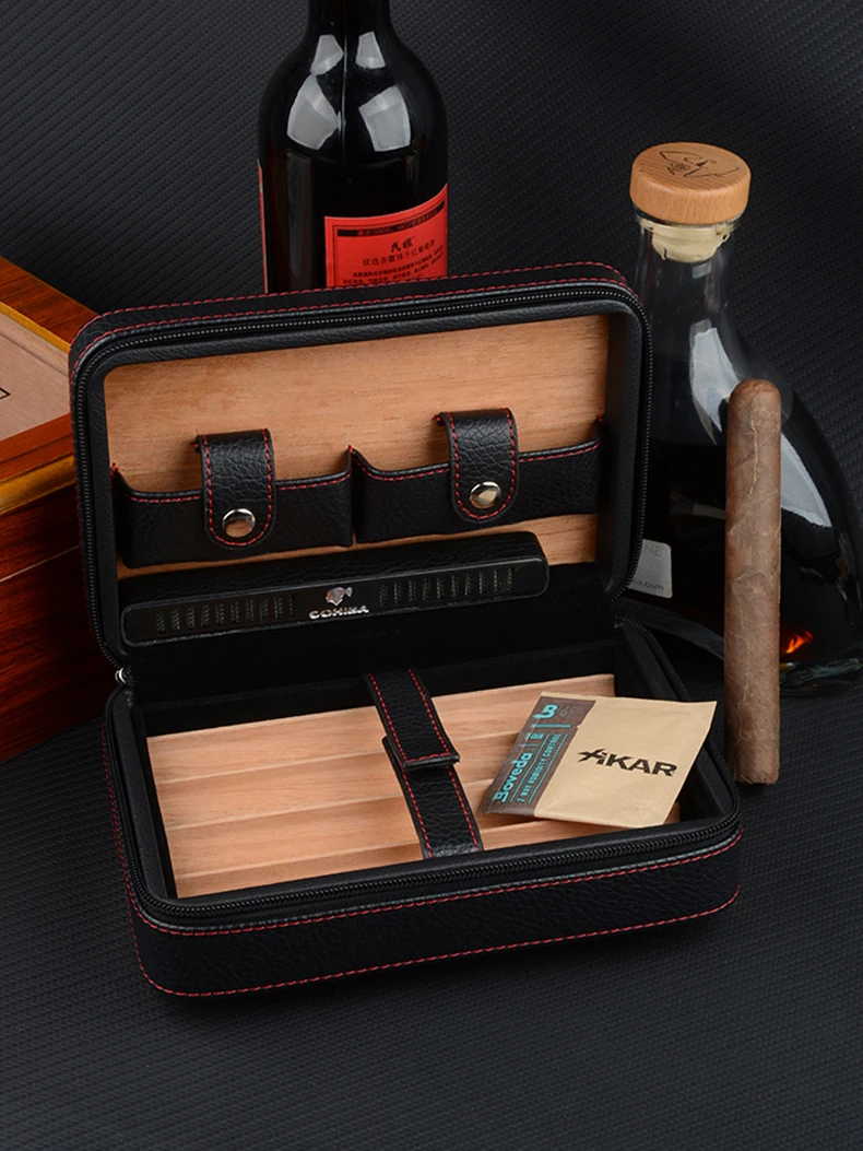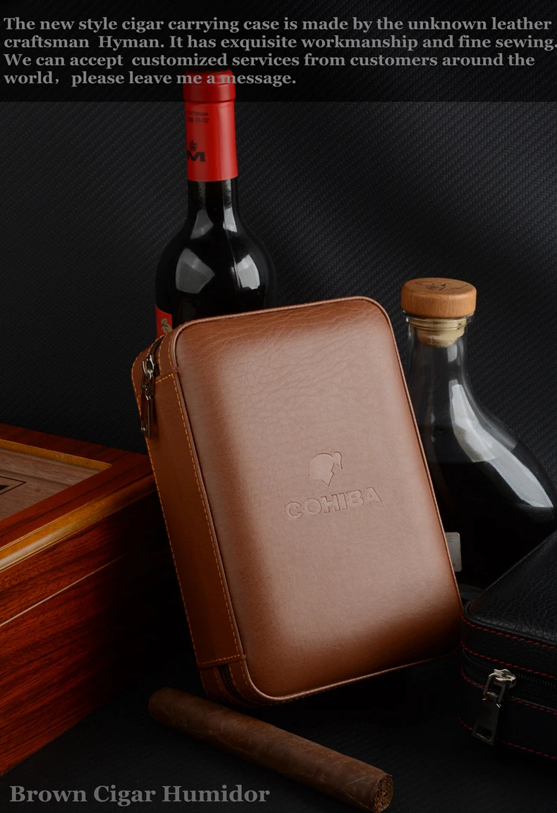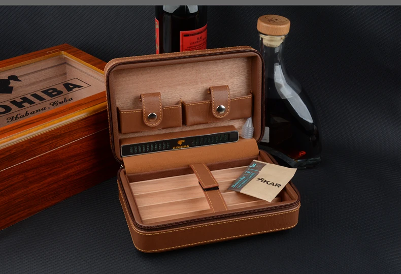 Cohiba кожаный чехол для сигар портативный хьюмидор держатель деревянная коробка из кедра увлажнитель для путешествий увлажнение (без зажигалки)
