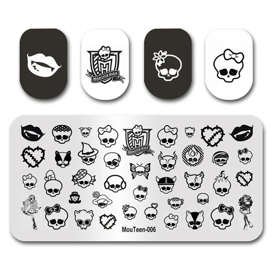Новейший дизайн ногтей штамповка MouTeen006 Мультфильм Монстр Высокий череп губы штампы для ногтей набор трафаретов для маникюра Штамповка ногтей
