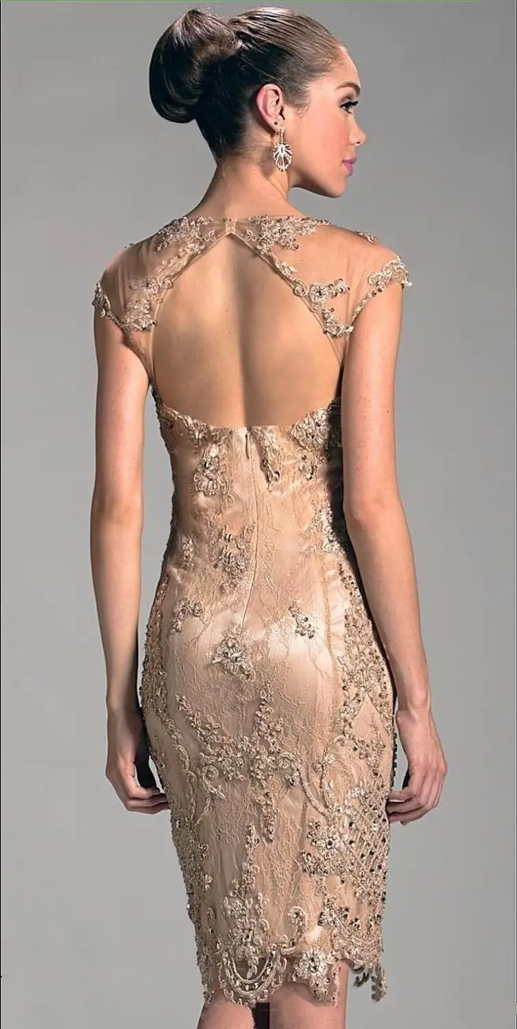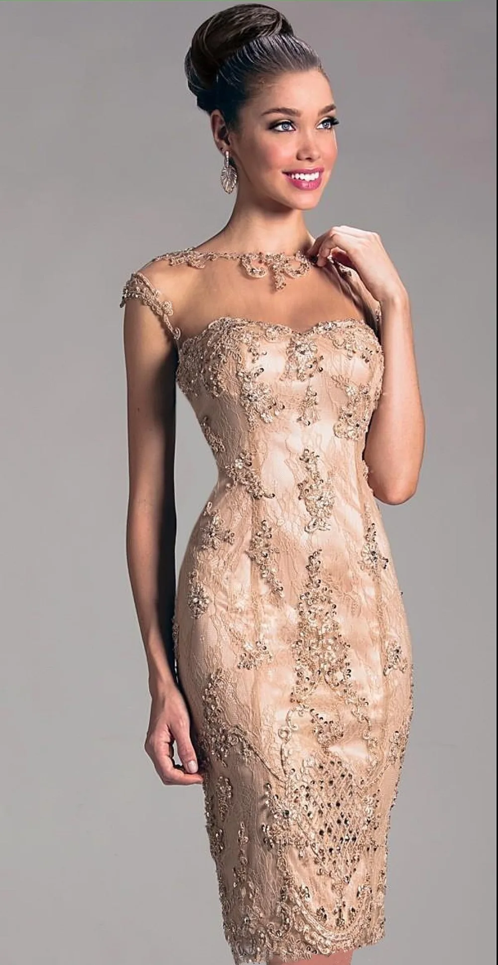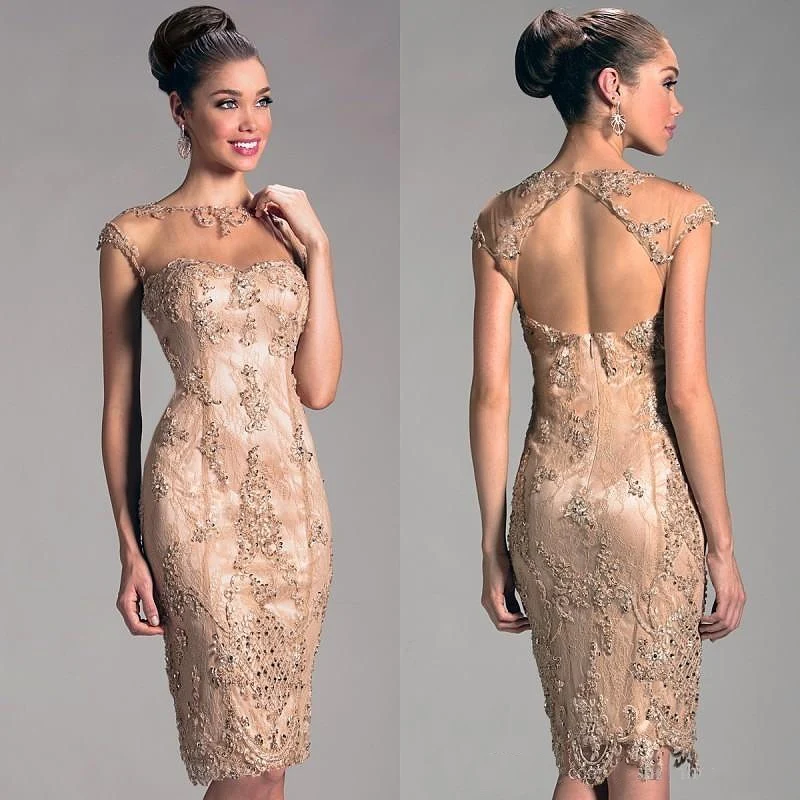 Платье-Русалка для матери невесты, кружевное короткое блестящее платье цвета шампанского с рукавами-крылышками, украшенное кристаллами и бусинами, для гостей свадьбы и выпускного вечера