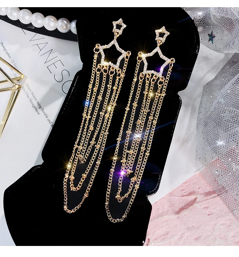 Новые корейские блестящие серьги с пятиконечной звездой и кристаллами для женщин, модные жемчужные стразы, вечерние серьги, подарок
