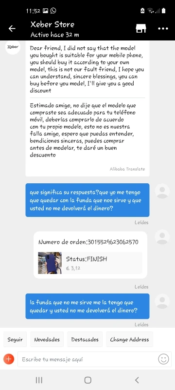 Отправленный товар не имеет ничего общего с моделью, которую я заказал, несмотря на то, что я написал продавцу, как вы можете видеть на фотографиях ниже ..... он не дает мне серьезного ответа и говорит мне, что ничего не может сделать, потому что он продолжает настаивать на том, что он отправил правильный товар ..... и ничего Я могу сделать это сейчас.. Афера ....