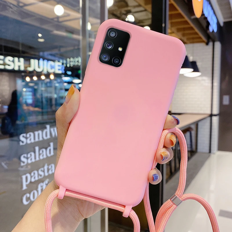 Мягкий силиконовый чехол с ремешком через плечо для Samsung S21, S20 FE, Note 20 Ultra, 10 Pro, A51, A71, S10 Lite, S8, S9 Plus, яркий Чехол