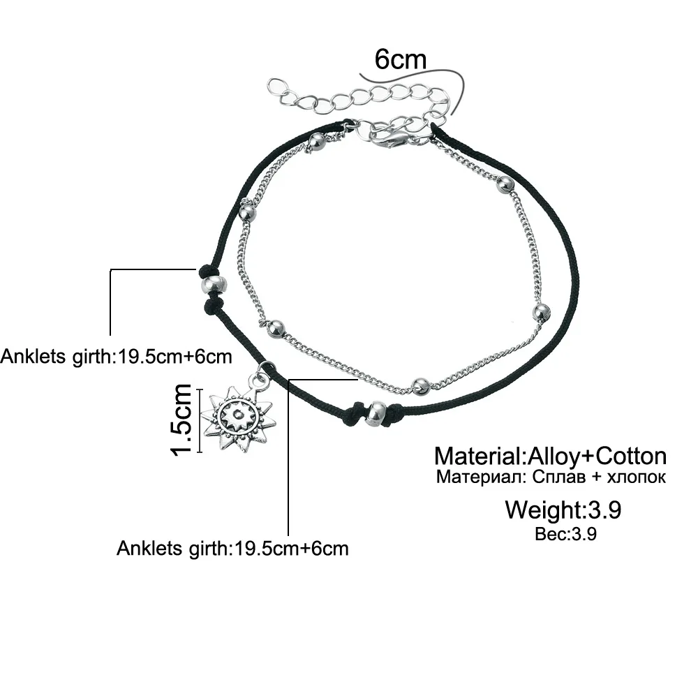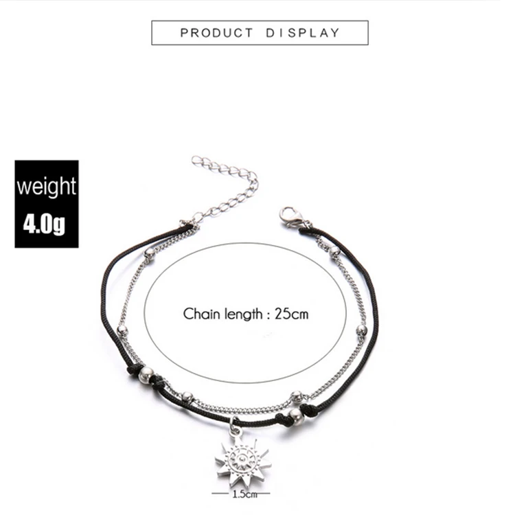 Цепочка на ногу Женская серебристая, амулет с бусинами от солнца, пляжный аксессуар в богемном стиле