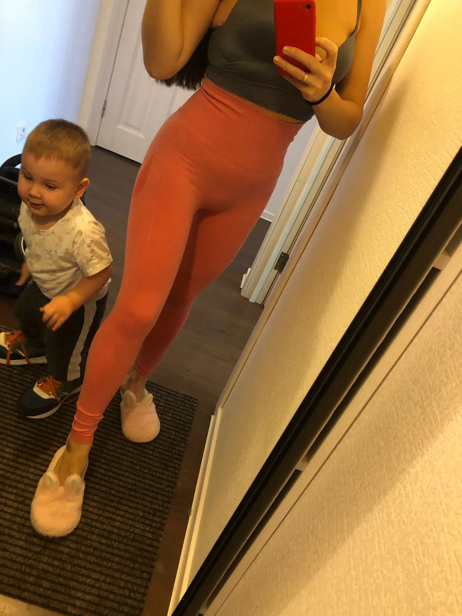 Заказывала леггинсы для домашних тренировок да и просто ходить перед мужем в таких секси-штанах приятно) Классный для тела материал, брала размер М на рост 164, чуть великовата в высоту резинка, но не критично(мои параметры: бёдра 91, талия 68). Думаю девушкам повыше ростом будет идеально. В спортзал розовые и светлые оттенки не стала бы брать, просвечивает немного белье. Подумаю над приобретением тёмных леггинсов, в них попа с этой стяжкой может не будет смотреться так «аппетитно», ведь в зале нужен комфорт ещё и оттого, чтобы не ловить мужские взгляды конкретно на пятой точке. Рекомендую к покупке!