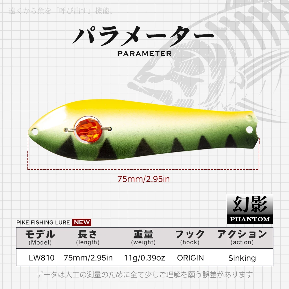Hunthouse металлическая рыболовная приманка, ложка, приманка, Спиннер, приманка 75 мм11 г, Троллинг, погружающийся окунь, щука, окунь для пресной воды LW810