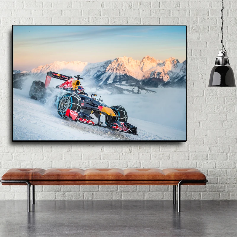 Гоночный автомобиль Транспортное средство, Снежный мир, экстремальный спорт, холст, печать, гостиная, домашний декор, современный украшение на стену, живопись маслом, плакат HD