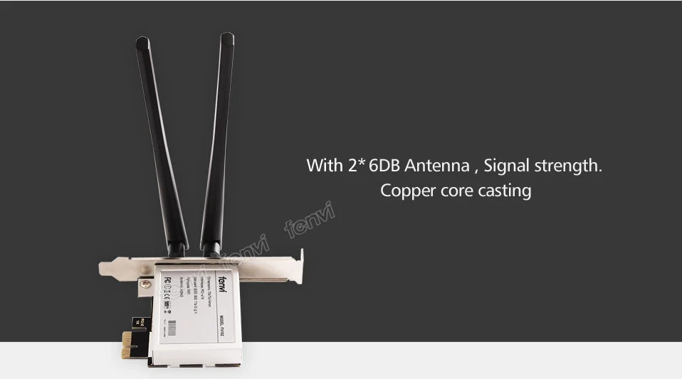 Бренд: FenviМодель: FV102С антенной 2x6 дБОтличный сигнал; Высокая скоростьПреобразование карты NGFF (например, WLAN, WWLAN, BT) в стандартный слот PCI-E 1X x4 x8 x16Две антенны 6 дБи, внутри медь, вращение на 360 градусовПозолоченный антенный разъем, нулевое сопротивлениеПечатная плата 3U с черным погружением, отличное соединениеПоддержка DOS, Windows Server 2003/XP/Vista/7/8/10, Linux, Mac OS.Черный кабель должен подключаться к материнской плате для использования bluetooth. Примечание:Это только настольный адаптер PCI Express, вам нужна карта NGFF, которая в комплект не входит. (Если вам нужна карта Wi-Fi, пожалуйста, свяжитесь с нашими сотрудниками, спасибо.) Совместимая модель:Этот адаптер поддерживает беспроводные карты 7260NGW /8260NGW/ 8265NGW/ 9260NGW/ AX200 NGFF(M.2). Также он может работать с картой Broadcom,Atheros Wi-Fi со слотом NGFF.
