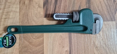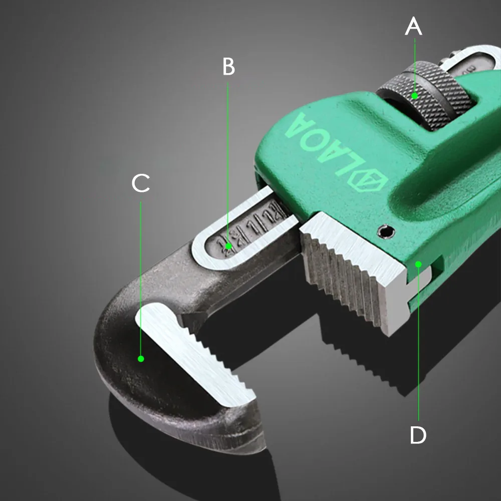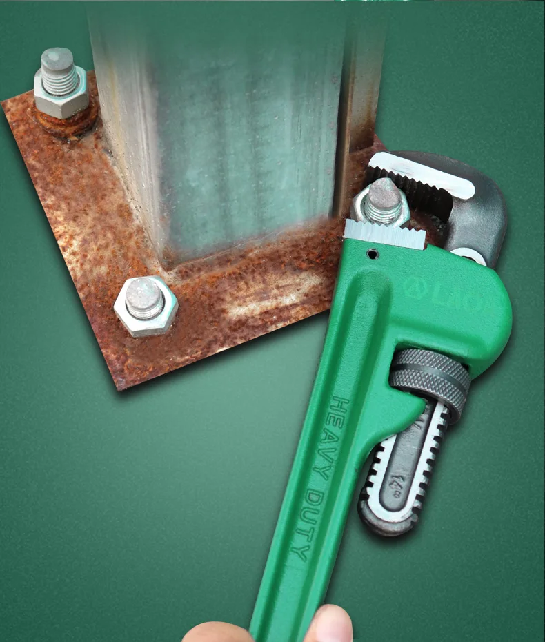 Сталь MATERIAL--C в, высокая твердость и крутящий момент Особенность-термообработка головки, защита от ржавчины и коррозии Подходит для всех типов труб Ручка-ключ для труб с прямой ручкой. Прочный корпус и рукоятка I-beam с полным плавающим зажимом крючка, антипригарной регулировочной гайкой и сменными зажимами крючка и пятки.
