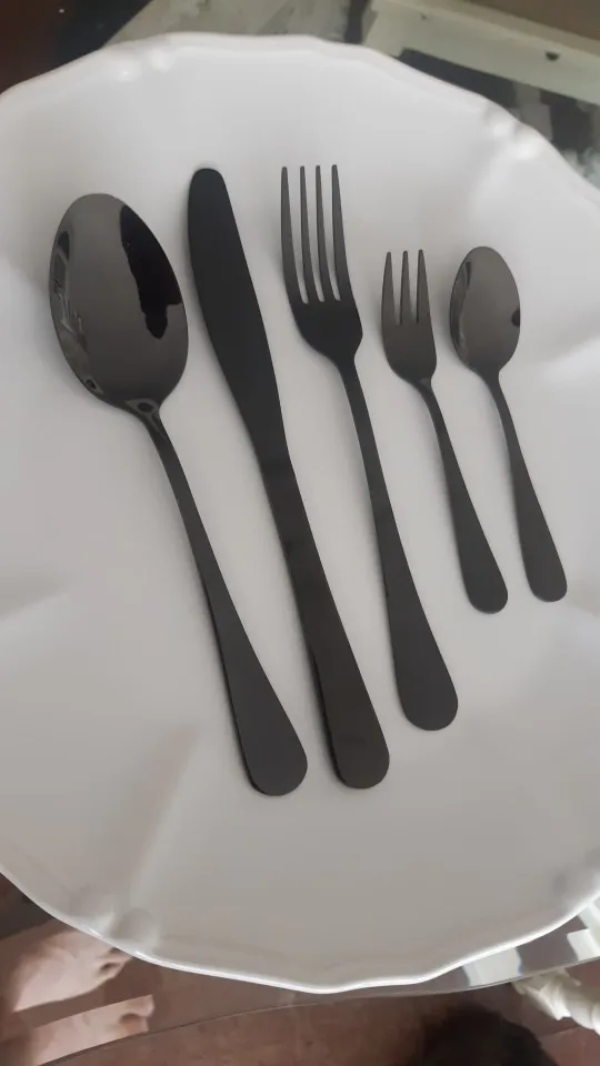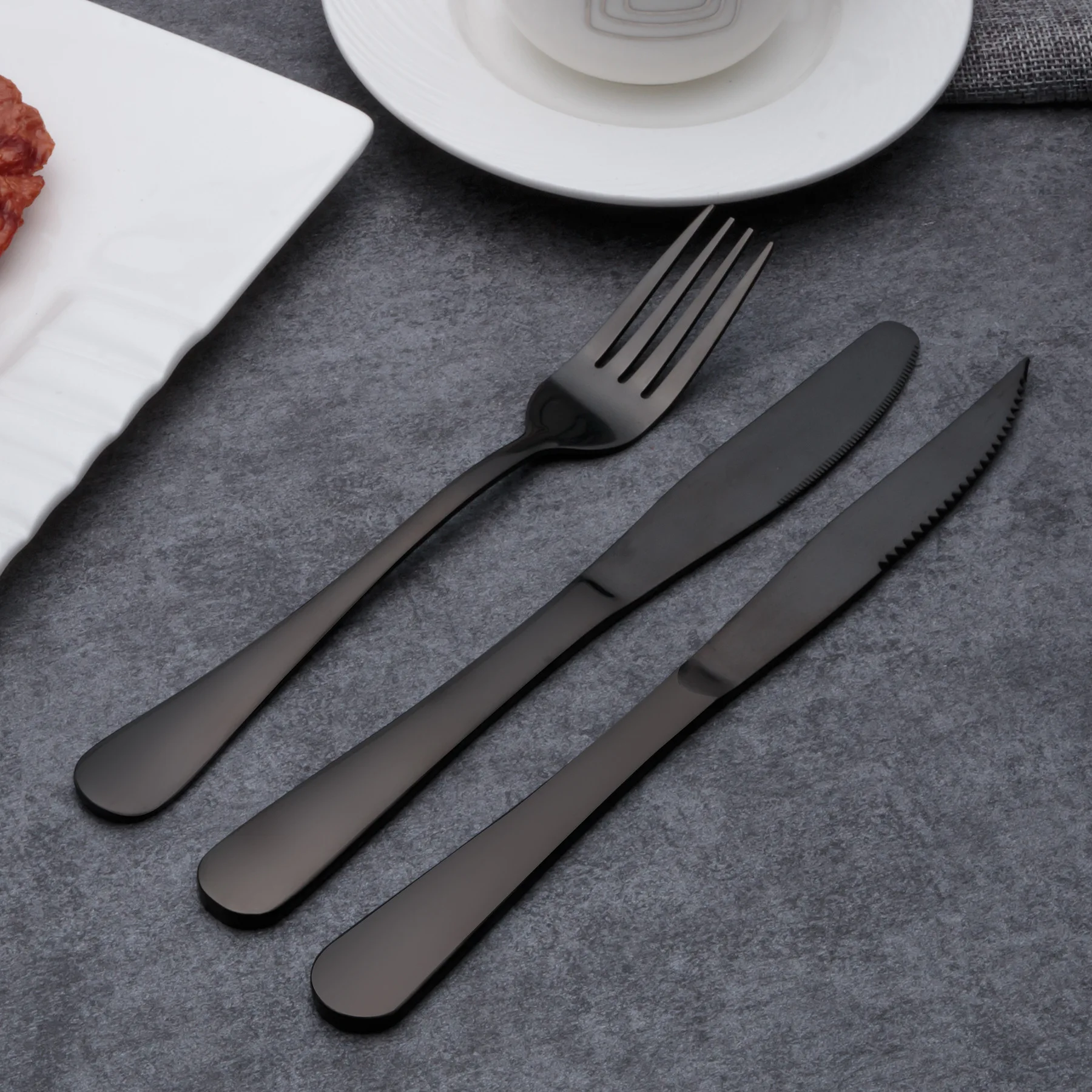 3024 шт., черные блестящие столовые приборы из нержавеющей стали