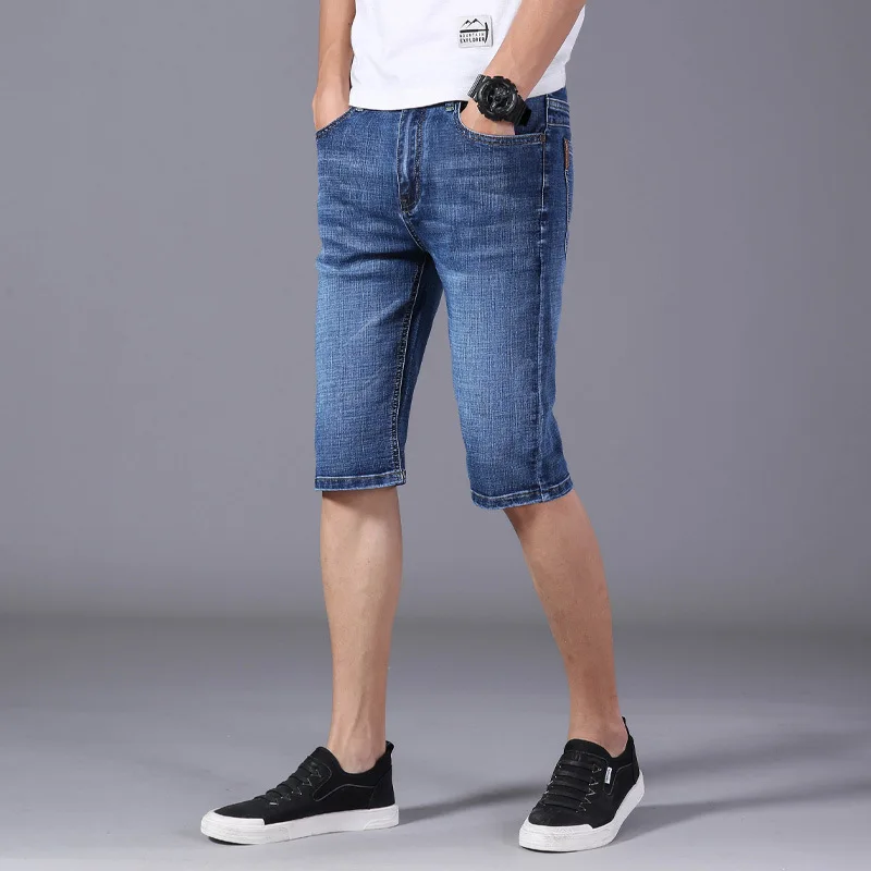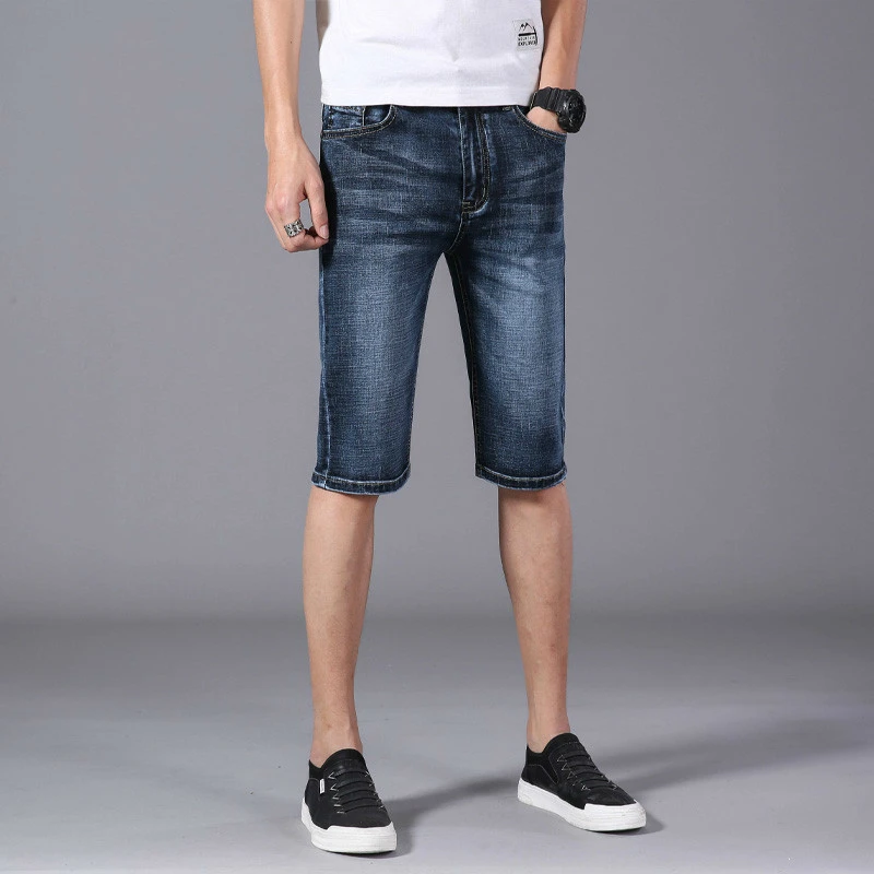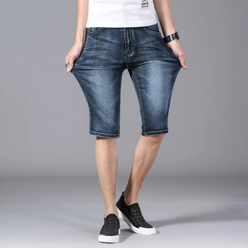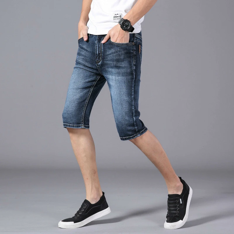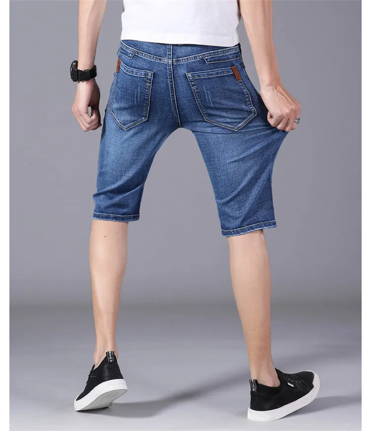 Джинсовые шорты мужские стрейчевые, модные брендовые тонкие хлопковые ковбойские бриджи до колен, повседневные синие мужские шорты из денима, лето, 2021