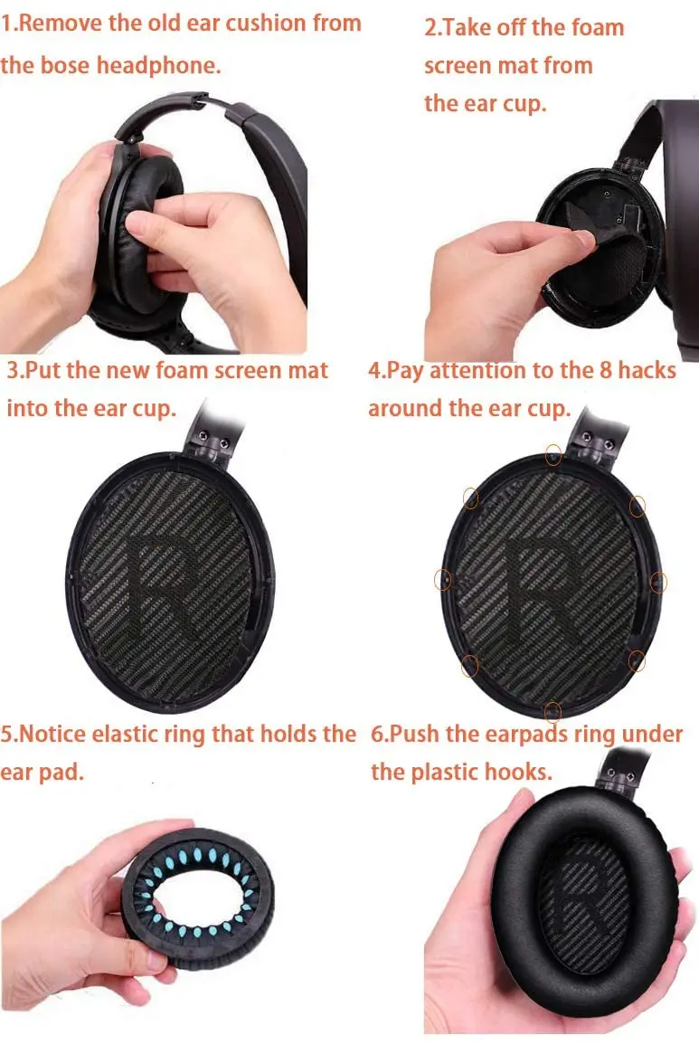 Эта замена идеально подходит для моего комфортного отдыха Bose 35. Кожаная насадка, которая держала пену на месте, пришита на мой оригинальный наушник, поэтому я направилась на них и направилась. Они отличного качества, не такие мягкие, как оригинальные, но все еще очень удобные. Инструкции были очень легко читаны и понятны, и, как вы можете видеть на картинке, они выглядят как оригинал, вы никогда не знаете, что я их заменил.