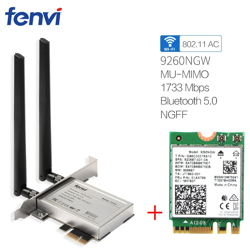 FV102 с 9260AC: Работает только на Microsoft Windows 10 * Совместимость с: почти компьютером с PCI Express (разъем PCI-E 1X/4X/16X); Не поддерживает iMac. Не поддерживает устройства с материнской платой AMD Chipest.