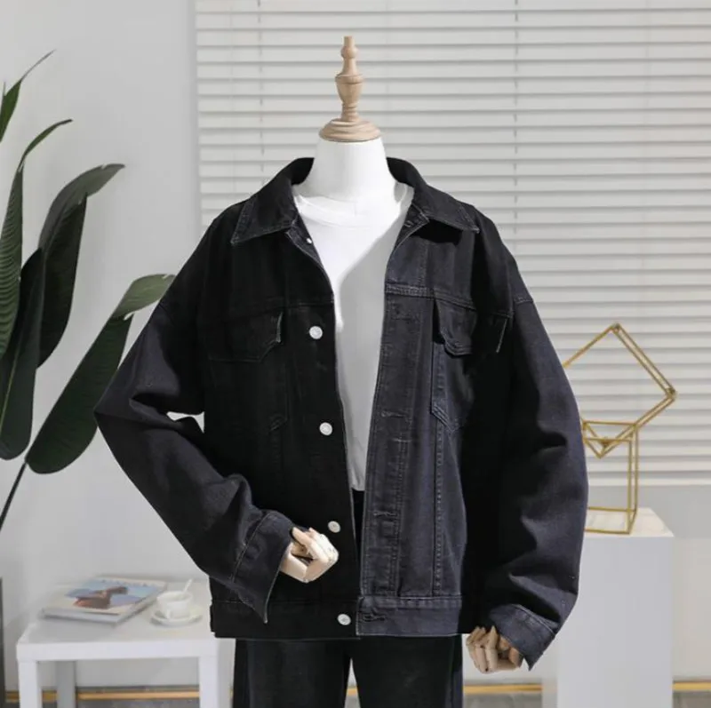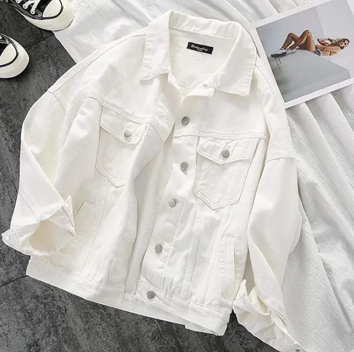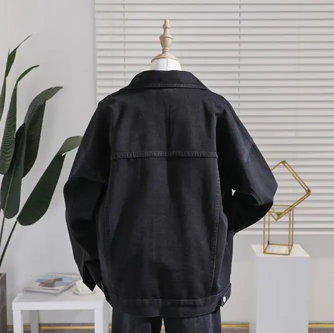 Куртка женская, черная, весна 2021 г., свободная, джинсовое пальто женское г., с изображением музыки прилива, винтажные джинсы, куртка
