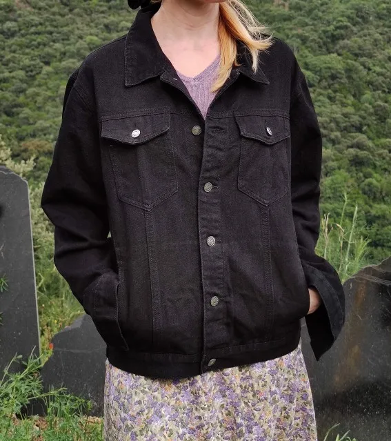 Женская короткая джинсовая куртка, черно-белая джинсовая куртка, ул...