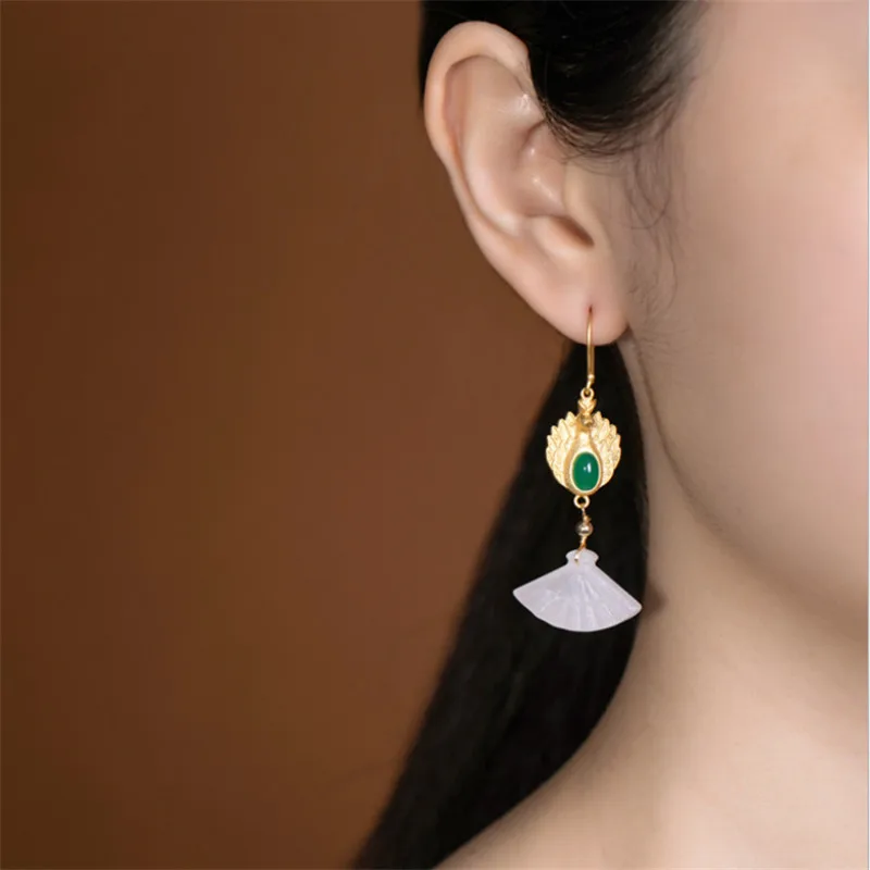 Женские серьги из серебра 100% пробы, с натуральным нефритом