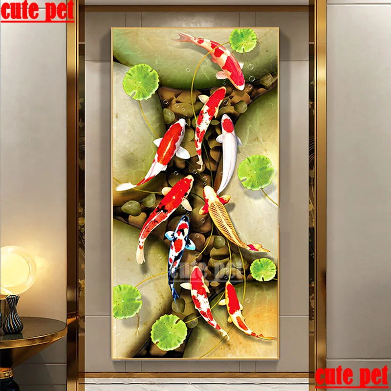 Алмазная картина с рыбками кои, Алмазная мозаика 5d большого размера для домашнего декора Стразы, полная выкладка