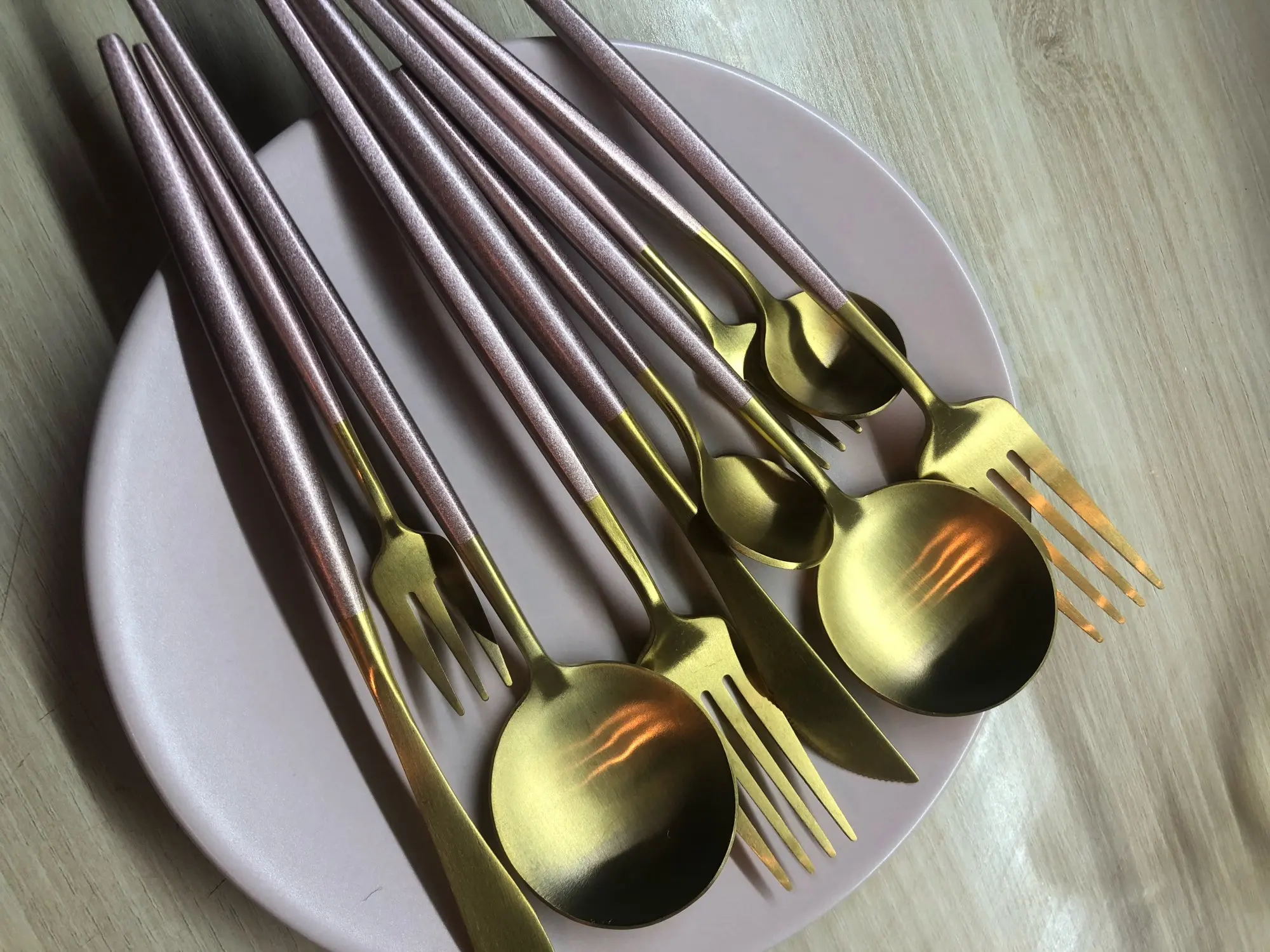 Ранее я заказал набор столовых приборов от того же продавца, и все подошло ко мне светло и изготовлено из стали. То, что я получил в этот раз, не имеет ничего общего с этим. Это не сталь, она очень толстая и очень тяжелая. Разочарован.