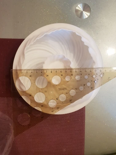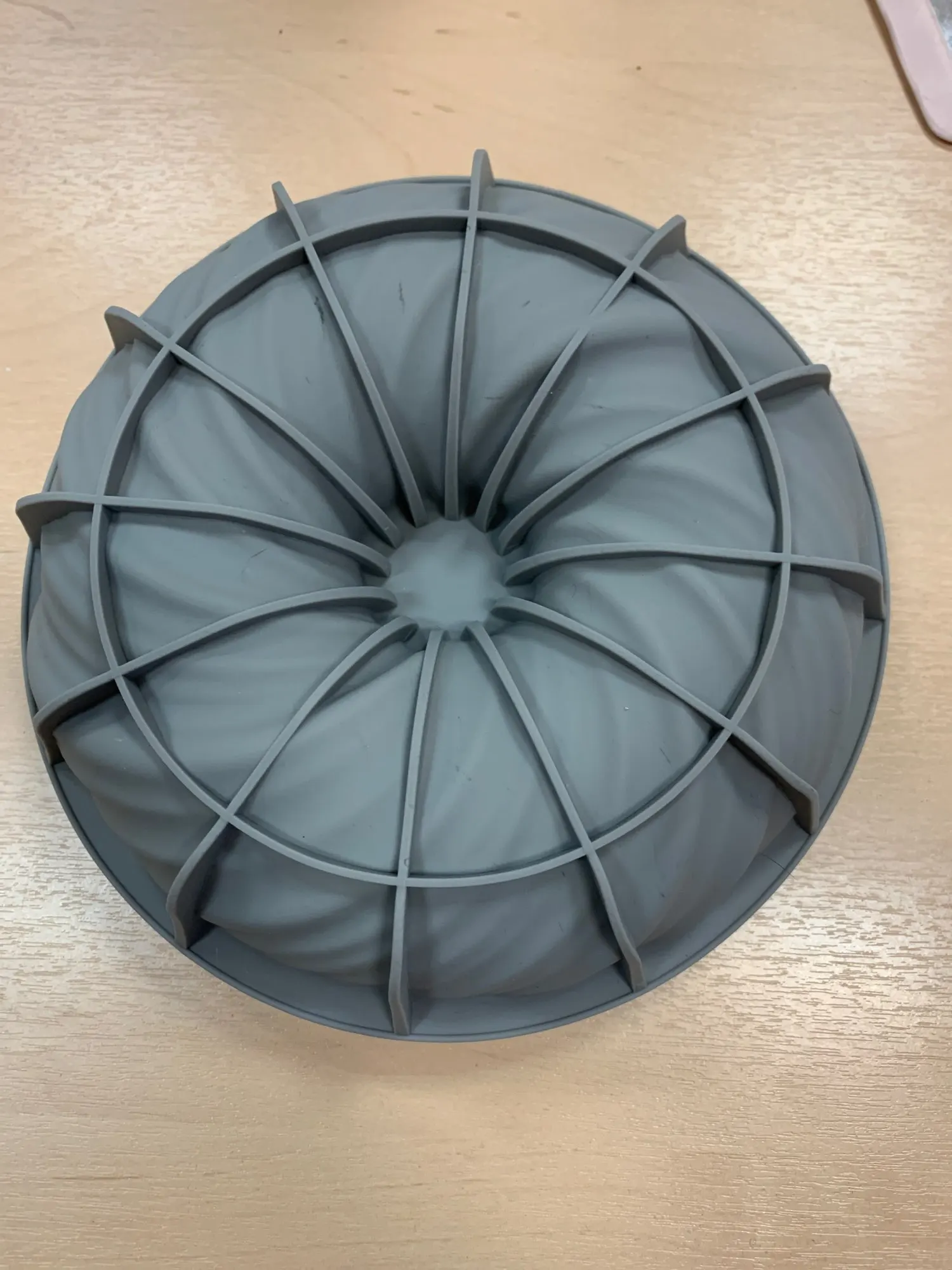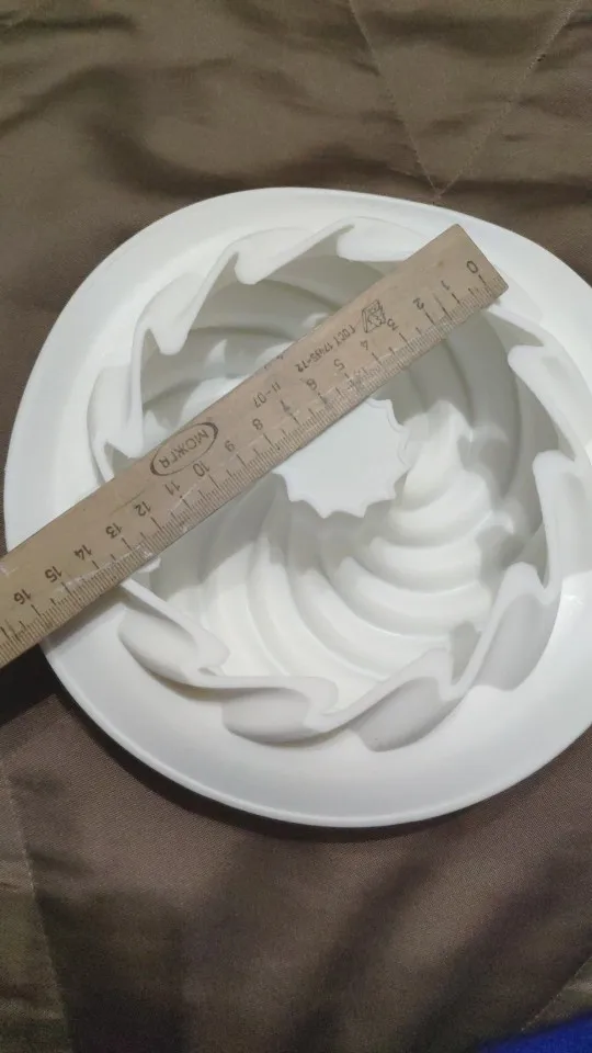 Форма отличная на вид, силикон мягкий, и она не маленькая! Думаю на торт около 1 кг. В деле пока не пробовала.