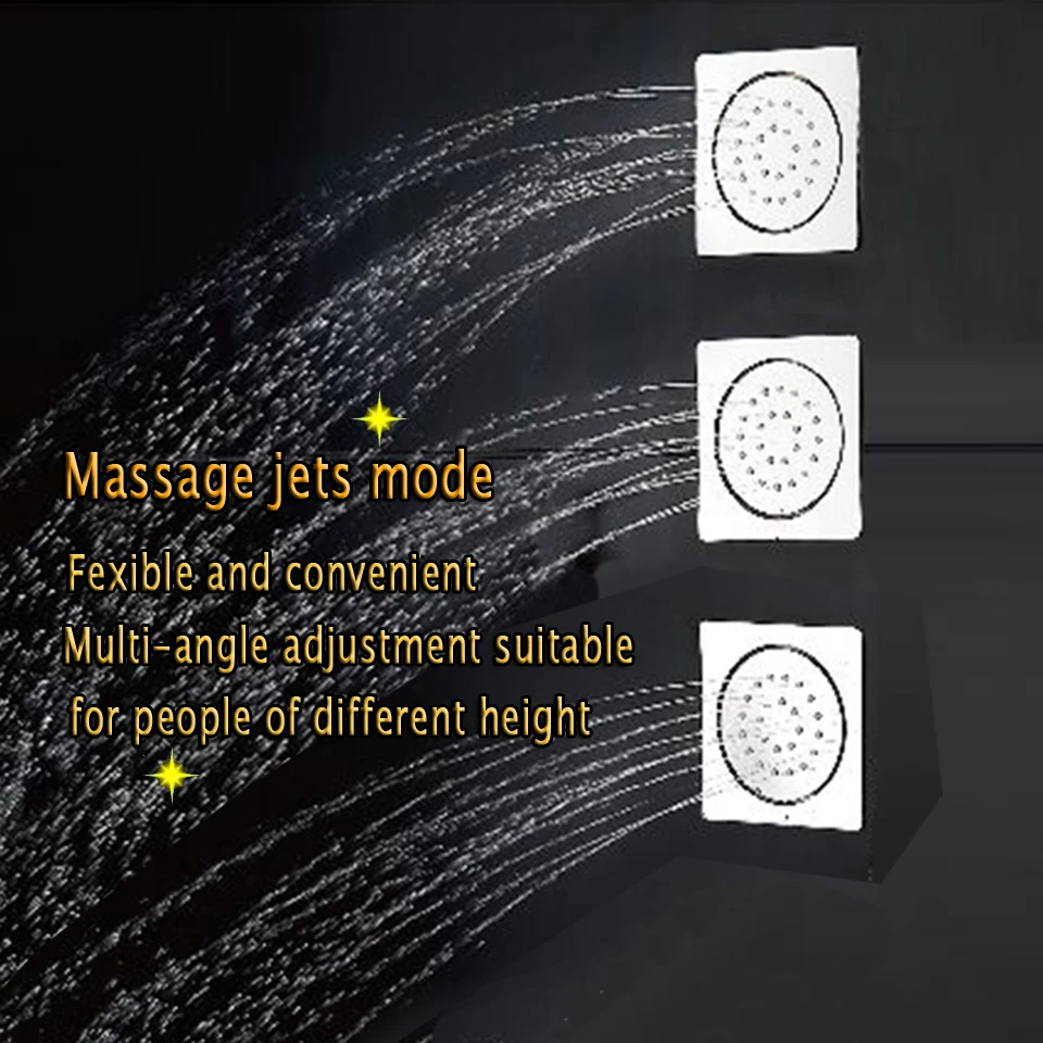 4.Описание массажных струй:4 набора массажных струй,Сделано из латуни и хрома, размер 120x120 мм,Вы можете получить приятный душ для вашего тела.