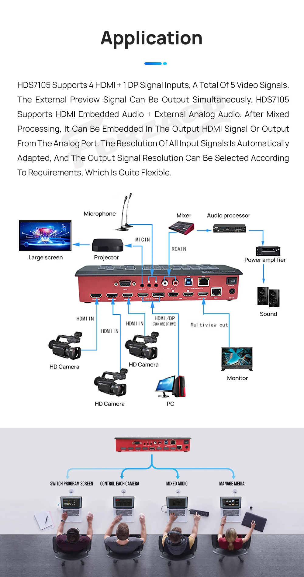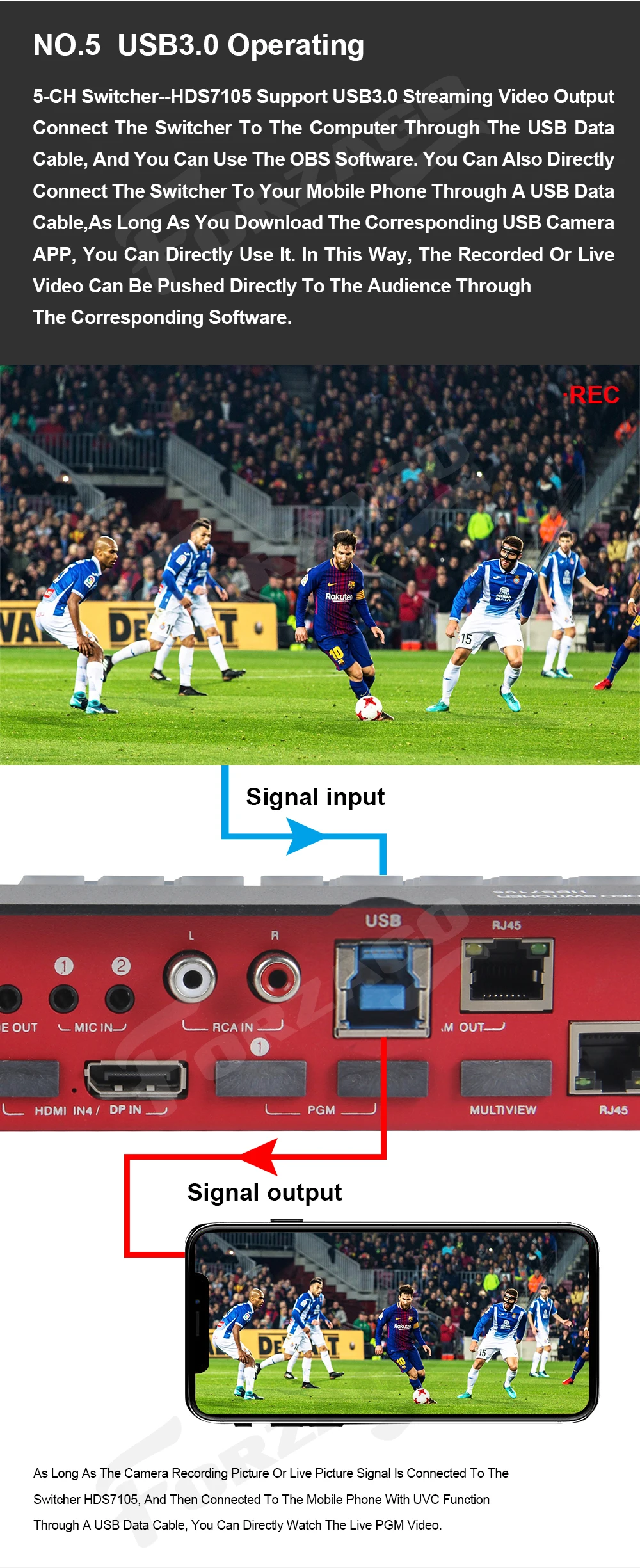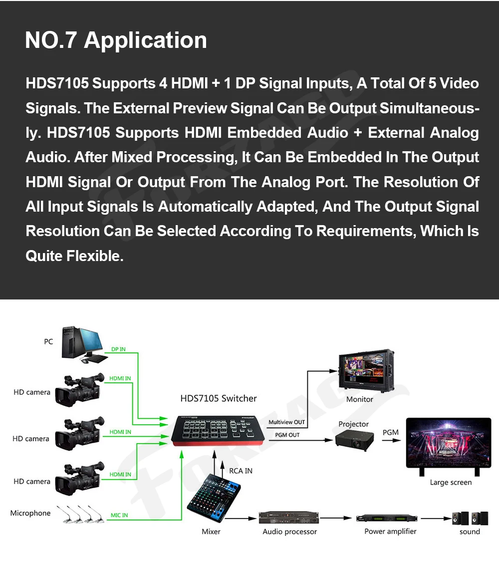 5-канальный коммутатор-HDS7105 поддержка 4 * HDMI + 1 * DP вход сигнала, может выводить 4 видео
