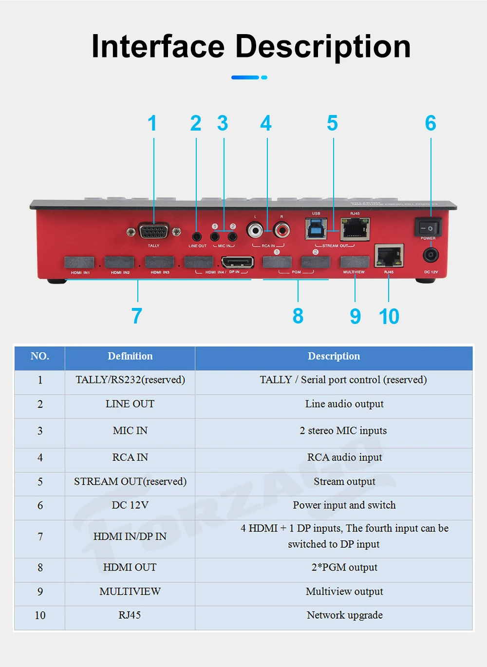 Переключатель видеосигнала DeviceWell HDS7105s, 4 + 1 DP входы, HD 13K, мульти-просмотр для прямой трансляции в Youtube