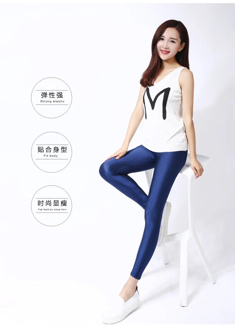 CUHAKCI Женские Блестящие Брюки Леггинсы хит продаж леггинсы однотонные флуоресцентные спандекс эластичный повседневные брюки блестящие леггинсы