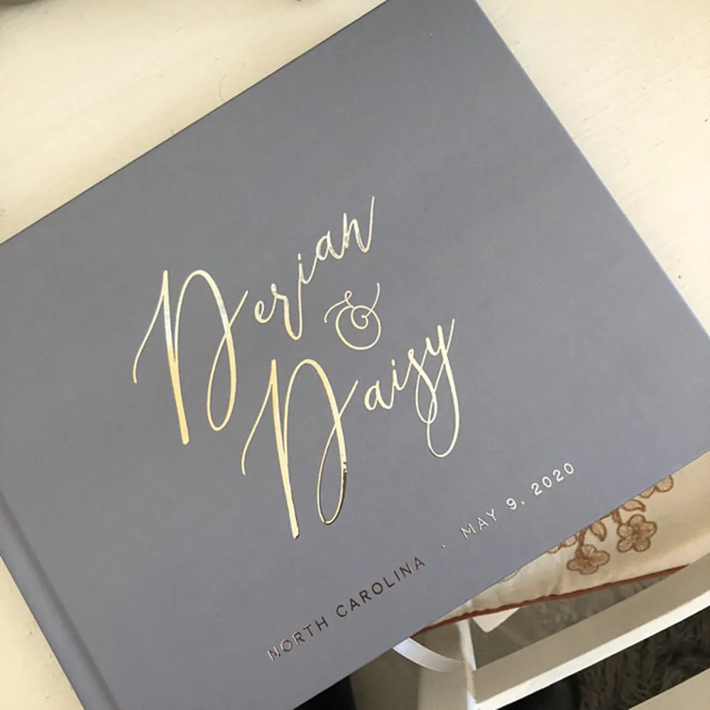 Индивидуальная деревенская Золотая фольга, Свадебная Гостевая книга с именем на заказ, Обручальная книга, знак на день рождения ребенка