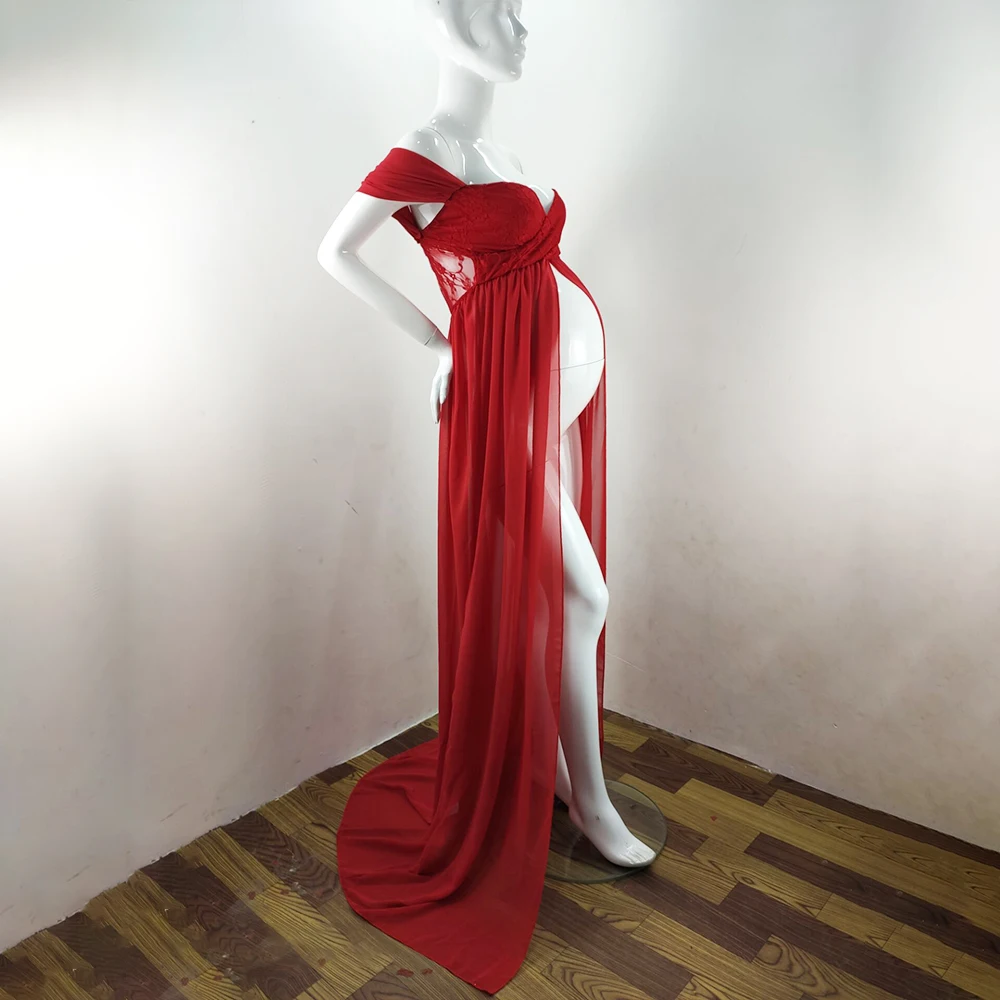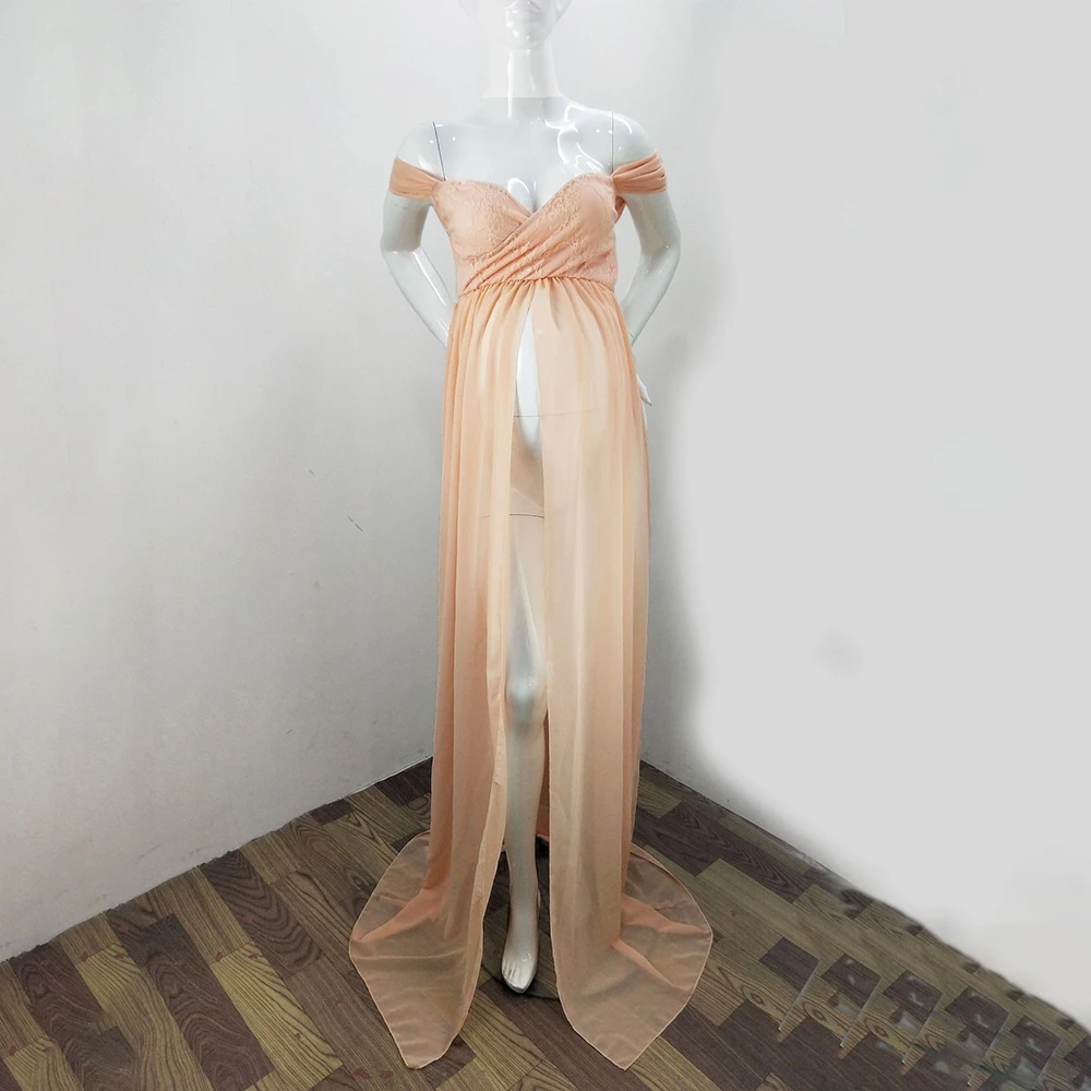 Платье для беременных с V-образным вырезом, разрезом спереди и коротким рукавом