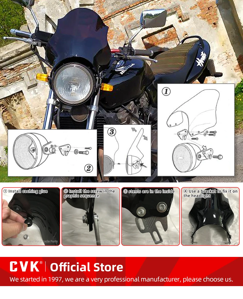 CVK универсальное лобовое стекло мотоцикла, круглые огни, уличный велосипед, ветровое стекло для HONDA Hornet CB400 CB600 CB750 CB900 CB919 CB250