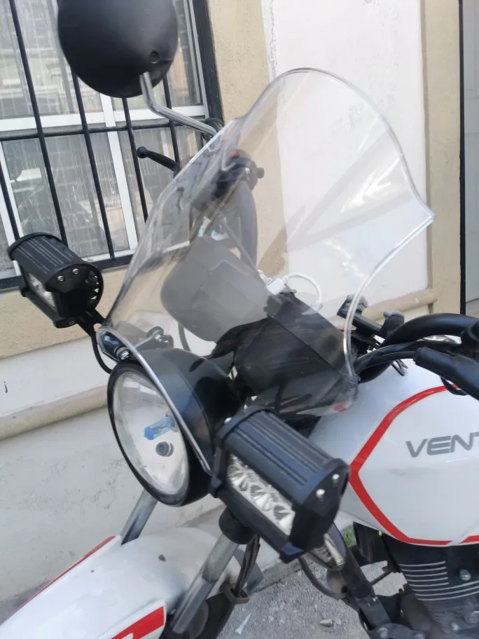 Хорошей дешевый ветровик, правда не тонированный, а полностью из чёрного пластика, крепления дюралевые , болты все в комплекте, ставится за 5 минут, посмотрим как будет отсекать поток, ждём пока пройдут дожди для теста,