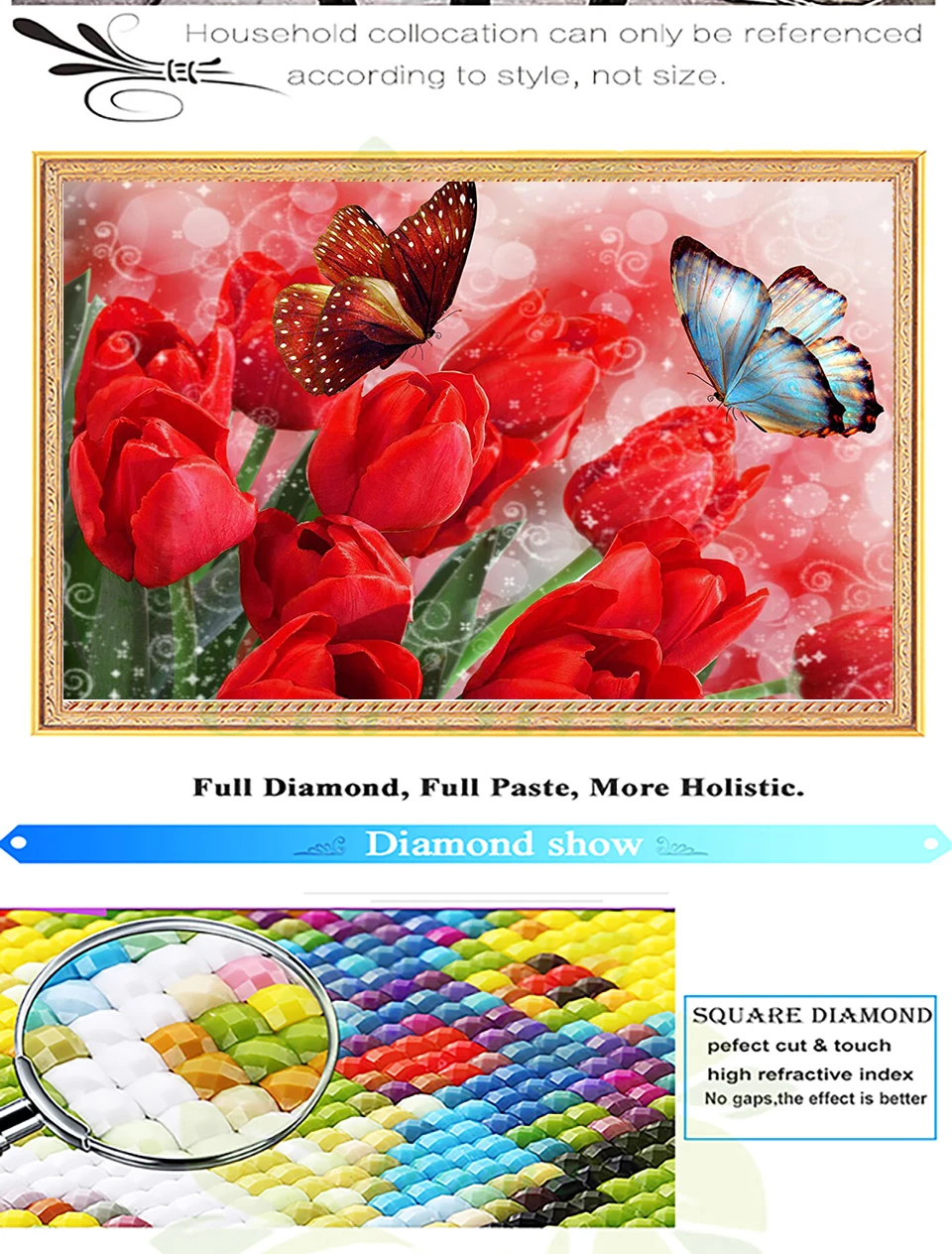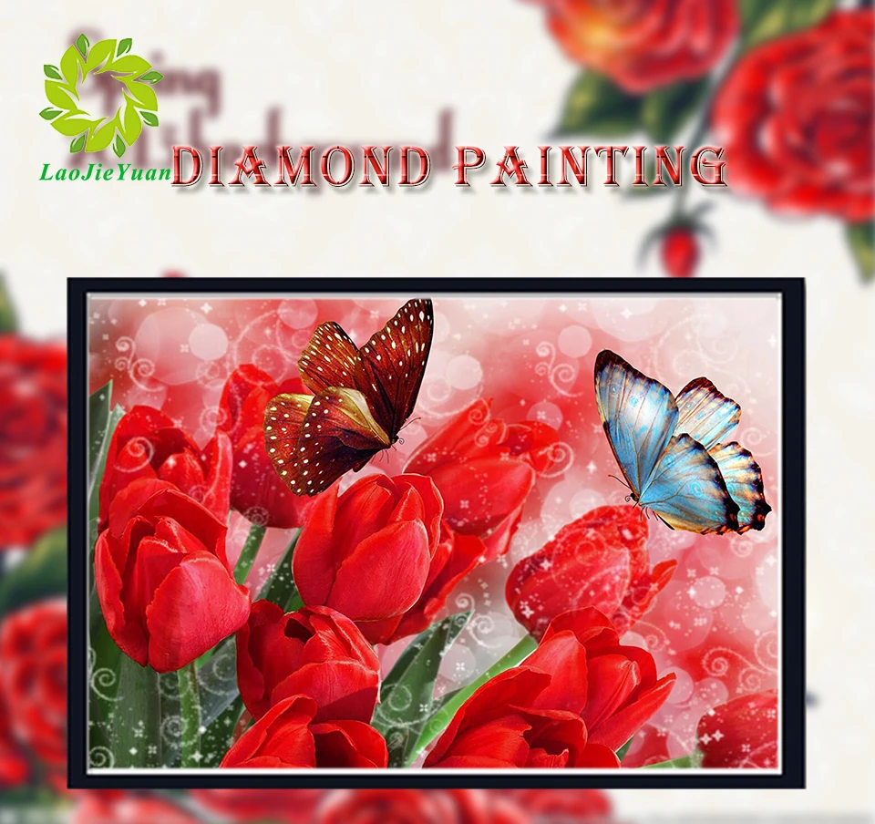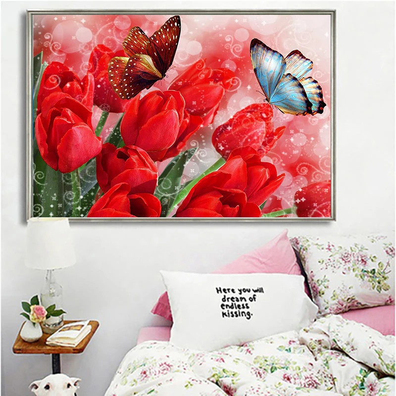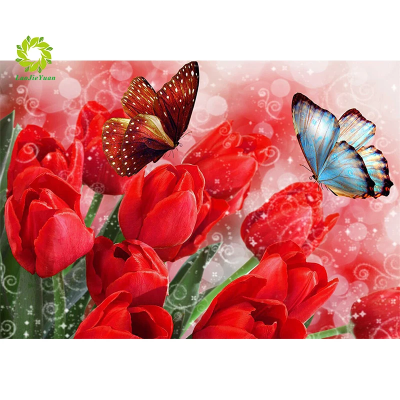 Полностью квадратнаякруглая дрель 5D DIY Алмазная картина "Тюльпаны и бабочки" Алмазная вышивка крестиком украшение для дома