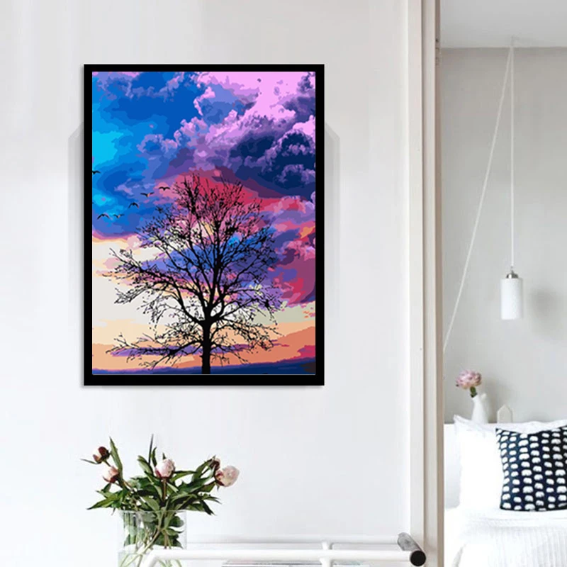 Галька Круглые бриллианты пейзаж, картина, выложенная алмазами полный квадратный пейзаж Картина Стразы мозаика цветы украшение дома