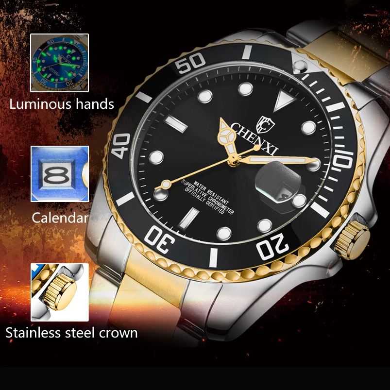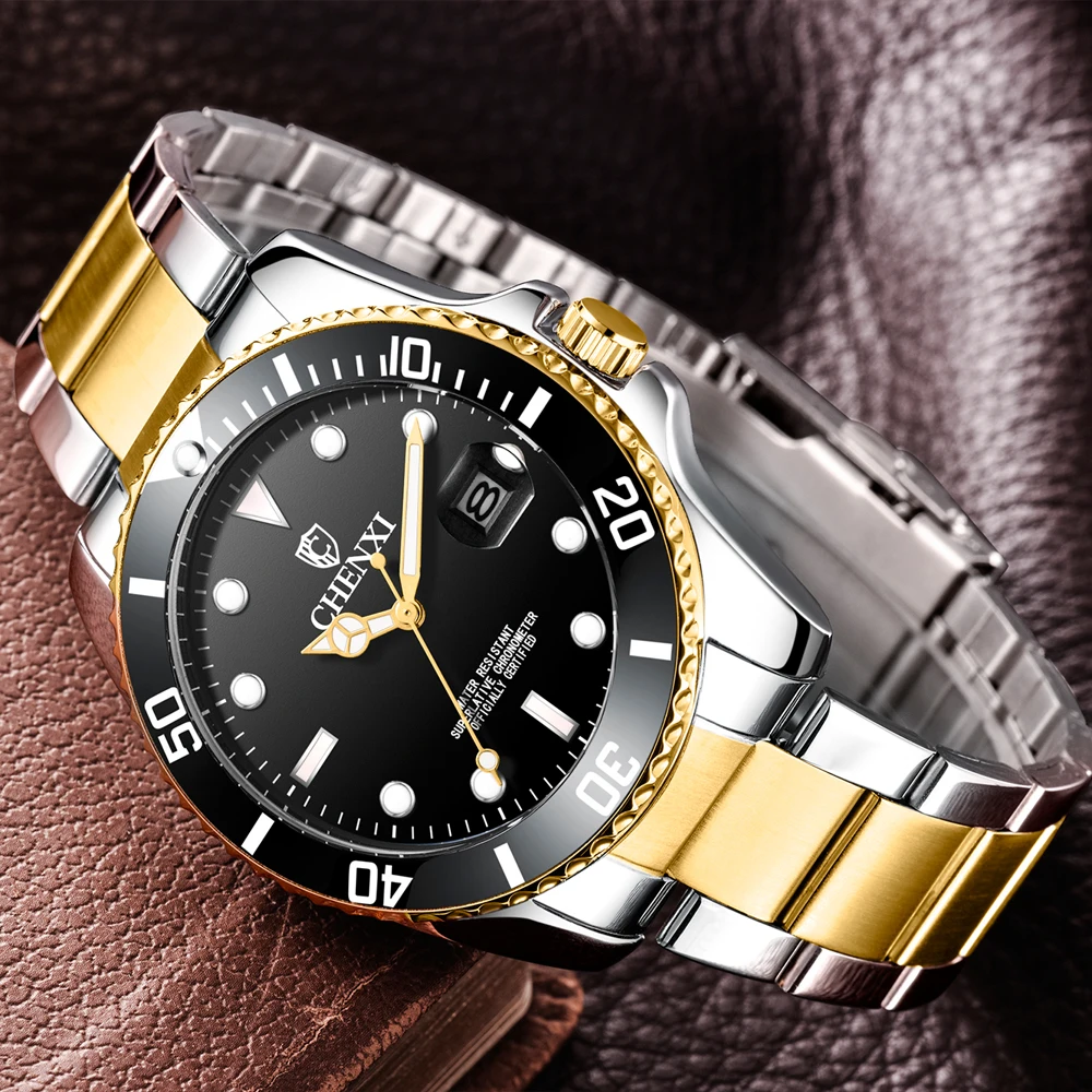 CHENXI 2022 новые мужские часы люксовый бренд бизнес часы водонепроницаемые кварцевые часы мужские полностью стальные золотые часы с календарем наручные часы