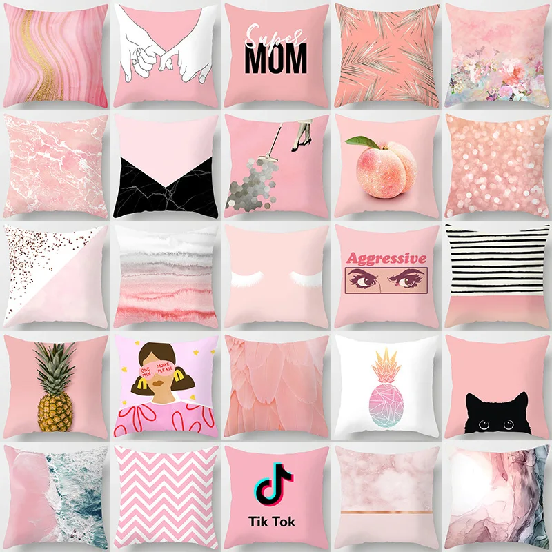 Чехол для подушки с летней темой, розовый геометрический чехол, подушка в виде фрукта для любимого кота, чехлы для дома, дивана, стула, декоративная подушка, чехол s