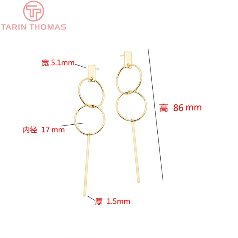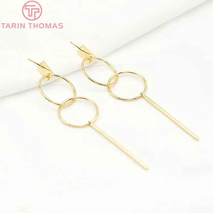 Латунные круглые серьги-гвоздики, 2 шт., 86x17 мм, 24 к