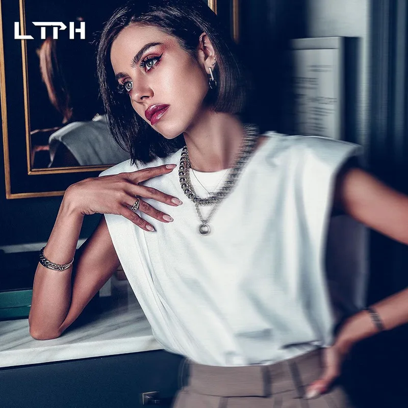Модная элегантная свободная футболка без рукавов с наплечниками, ст...