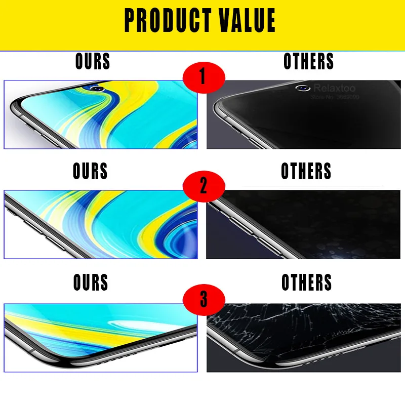 Особенность 1) Устойчивый к царапинам слой принимает во время повседневного использования устройства. 2) слой амортизации принимает все удары и подушки для защиты экрана от повреждений. 3) слой памяти автоматически помещается на изогнутых поверхностях при нанесении тепла 4) клейкий слой состоит из передовой технологии кремниевого материала, который имеет способность к выпуску пузырьков воздуха и многоразового использования после многократного применения 5) Максимальное поглощение ударов 6) Защита от царапин 7) сопротивление растягиванию 8) Нескользящая ручка 9) воздушно-пузырьковый клей
