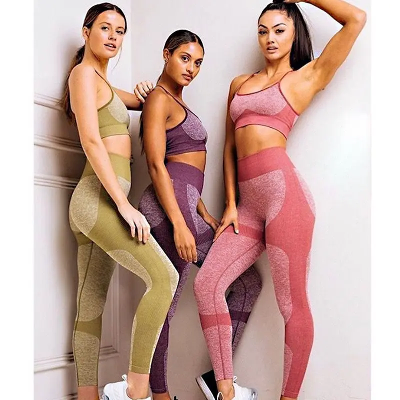 Спортивный комплект для йоги из 2 предметов, бюстгальтер и леггинсы для бега, женский спортивный комплект, бесшовные спортивные трико для тренировок, женский спортивный костюм для фитнеса