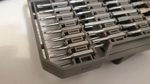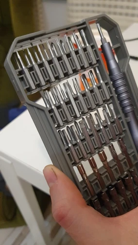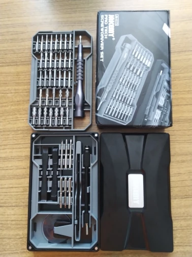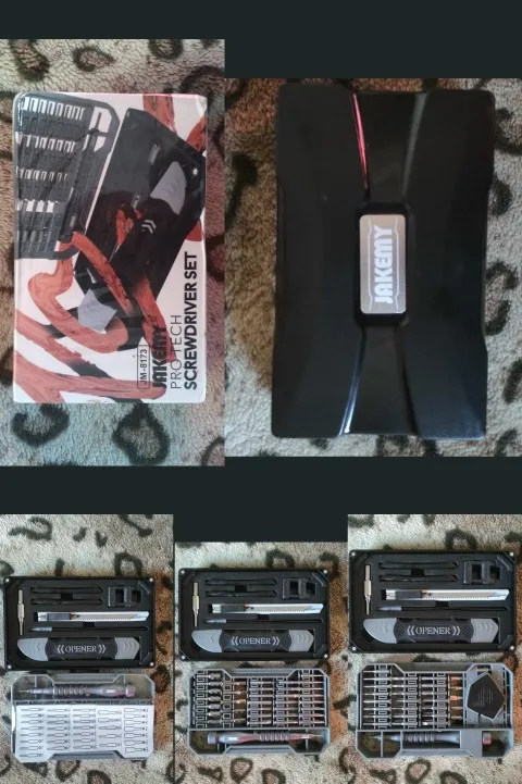 Доставили быстро, набор неплохой, присоска хорошая (хотя читал, что у кого-то была не очень). Но есть минус, некоторые биты не намагничены или очень слабо намагничены, а для меня это очень важный пункт, потому подумываю продать набор. Пинцет хороший, но достать его из коробки невозможно, нужно использовать какое-то приспособление. Пластиковые планки из мягкого пластика, при вскрытии ноутбука чуток помялись. В общем, набор не ТОП, но неплохой.