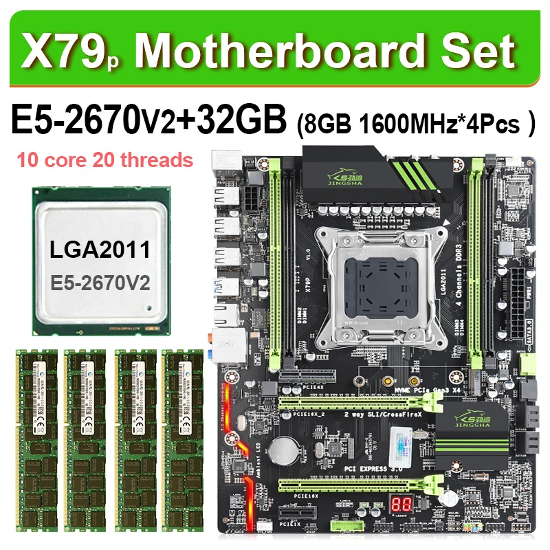 JINGSHA X79 Turbo placa base LGA2011 ATX combos E5 2670 V2 CPU 4 Uds x 8 ГБ = 32 ГБ DDR3 ОЗУ 1600 МГц PC3 12800R PCI-E NVME M.2 SSD