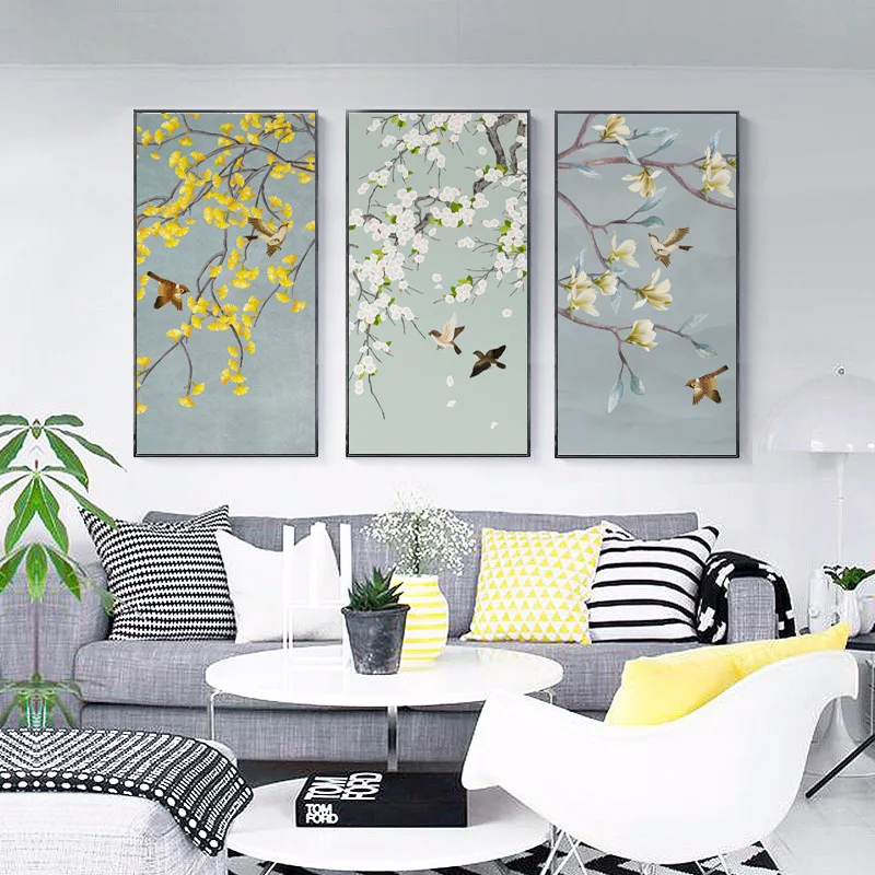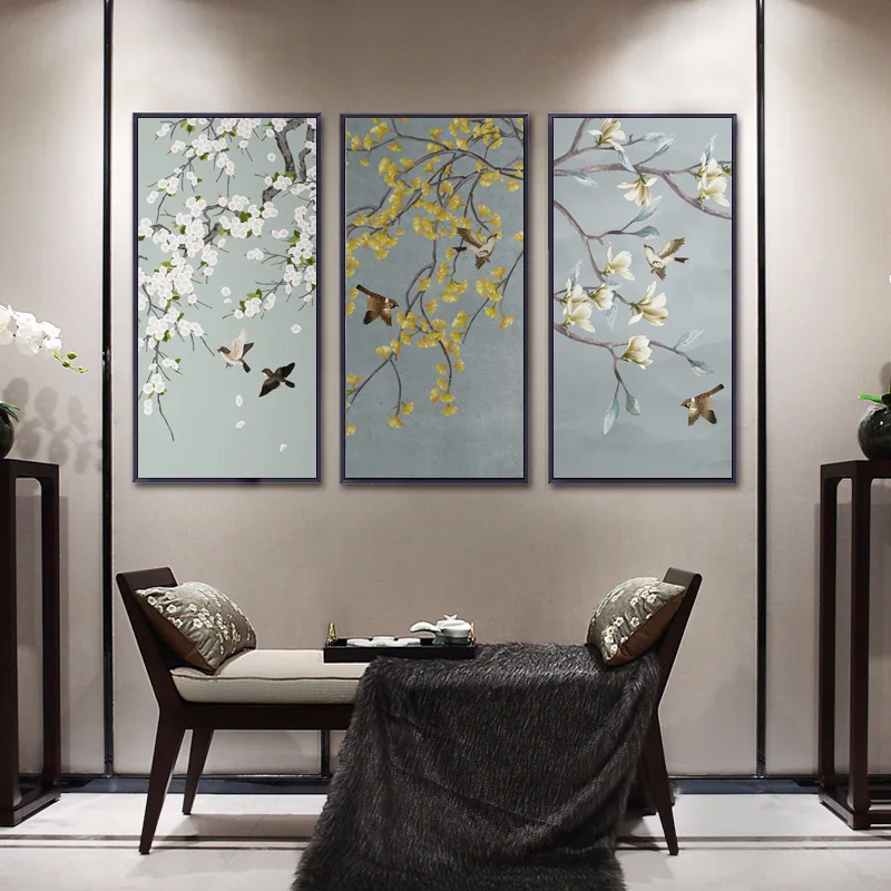 Картина с цветами и птицами в китайском стиле, постеры на холсте дл...