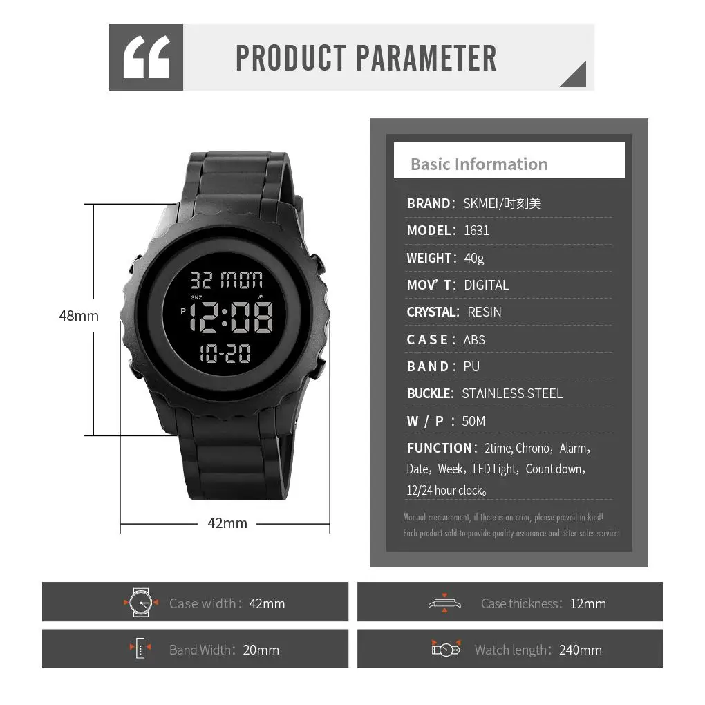 SKMEI мужские часы спортивные часы мужские цифровые наручные часы 1631