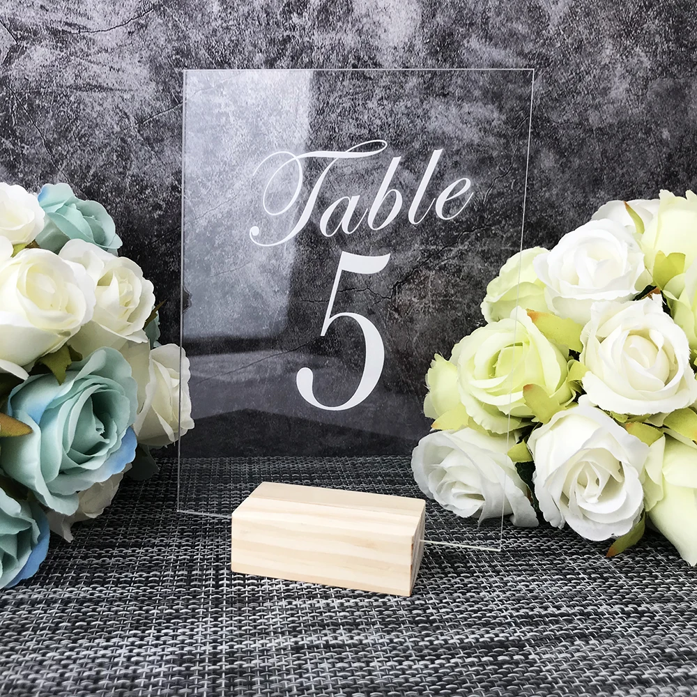 Акриловая каллиграфическая номера свадебных столов с деревянным держателем, набор для свадьбы, события, душа, цифры, Современный Свадебный Стол