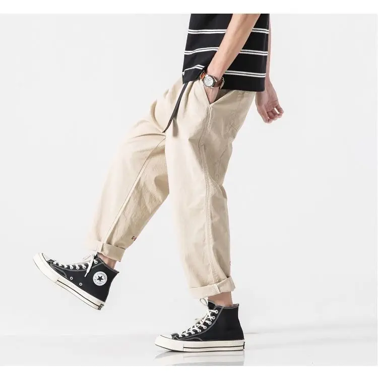 Брюки-карго для мужчин, слаксы, корейские свободные шаровары больших размеров, широкие брюки, брюки до щиколотки, студенческие спортивные брюки, брюки