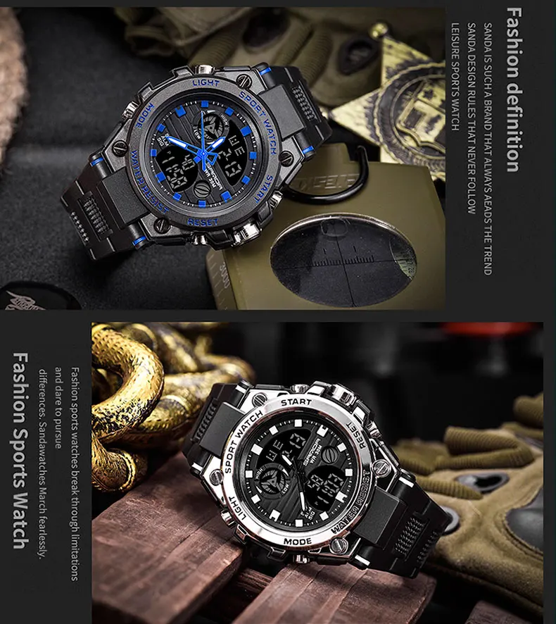Часы мужские SANDA, спортивные, водонепроницаемые, с двойным дисплеем