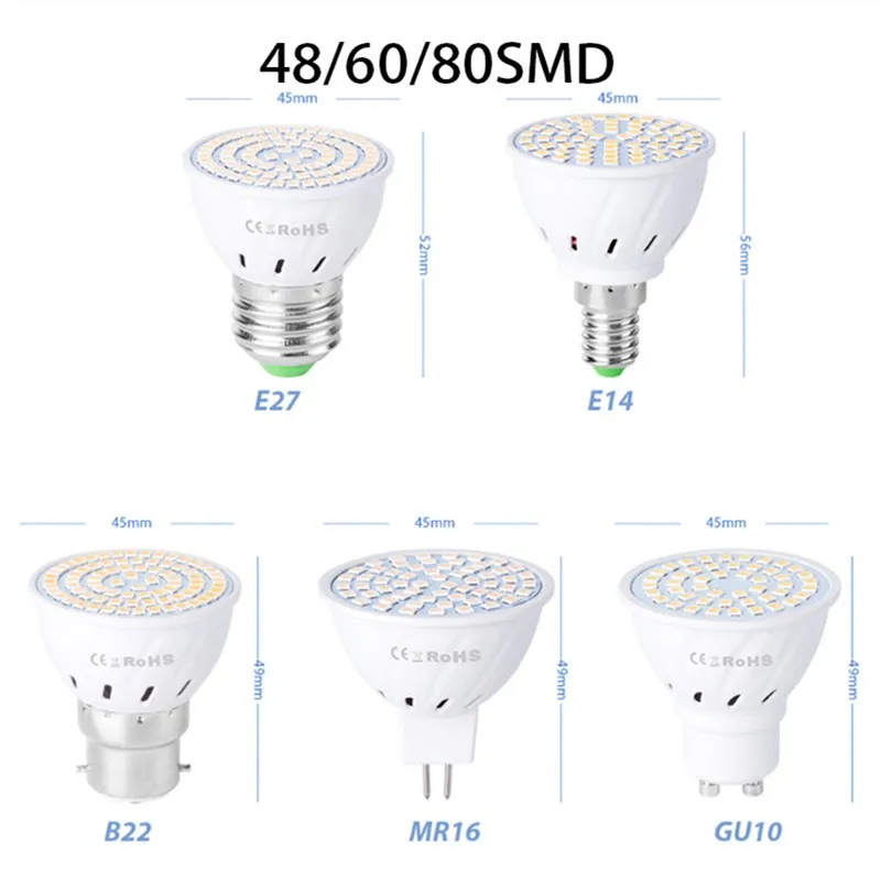 Светодиодный точечный светильник GU10 E27 MR16, светодиодная лампа 220 В 48 60 80 светодиосветодиодный s 2835 SMD, светильник ый белый и холодный белый свет для дома, светодиодсветильник лампа